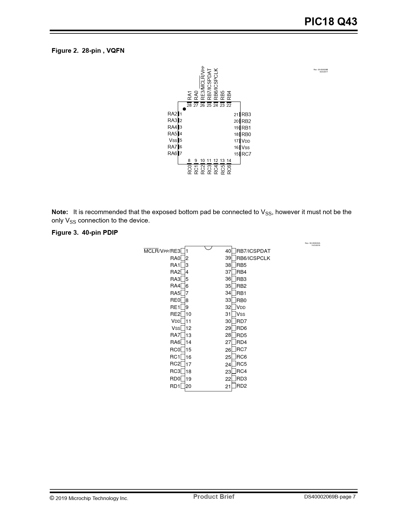 PIC18 Q43. Figure 2. 28-pin , VQFN. Note: . Figure 3. 40-pin PDIP. Product Brief