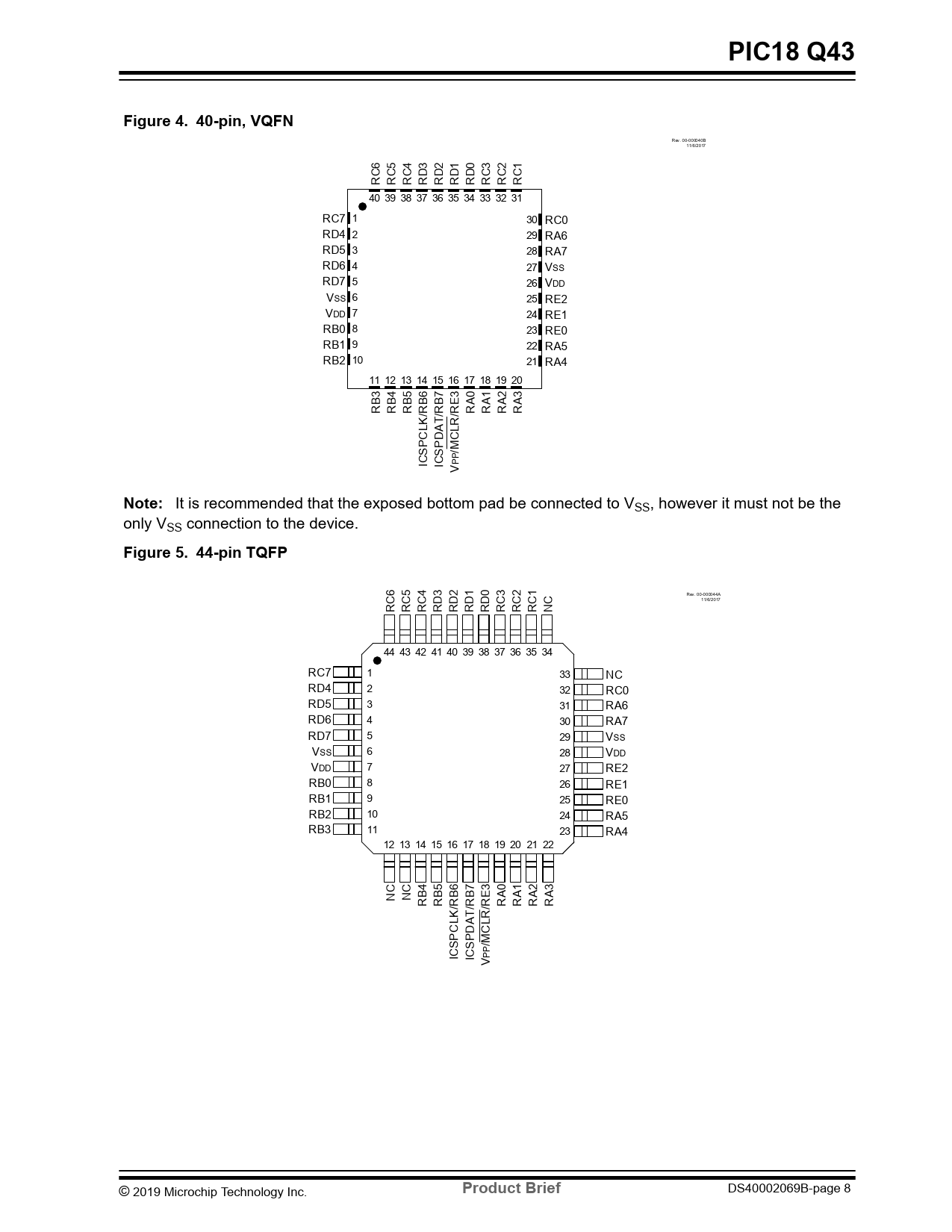 PIC18 Q43. Figure 4. 40-pin, VQFN. Note: . Figure 5. 44-pin TQFP. Product Brief