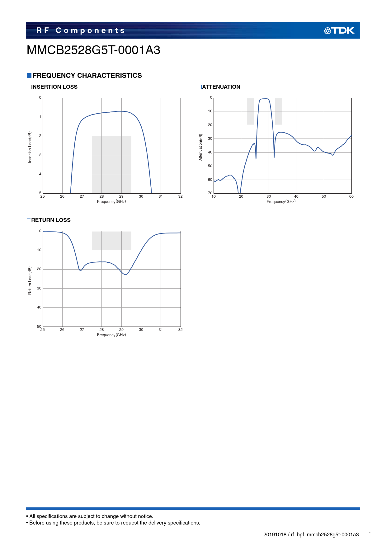 R F C o m p o n e n t s. FREQUENCY CHARACTERISTICS. INSERTION LOSS. ATTENUATION. RETURN LOSS