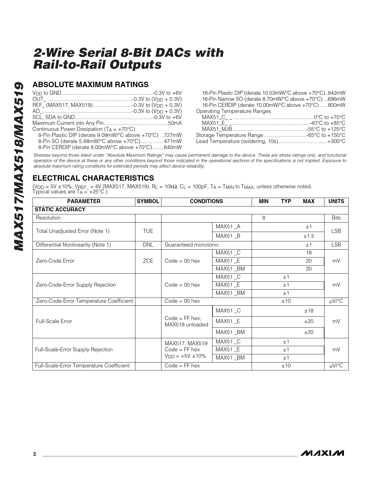 Datasheet MAX517, MAX518, MAX519 (Maxim) - 2