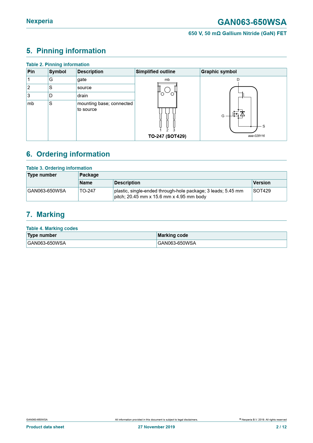 | 页数 / 页 | 12 / 2 — Nexperia. GAN063-650WSA. 650 V, 50 mΩ Gal ium Nitride (GaN) FET. 5. … |