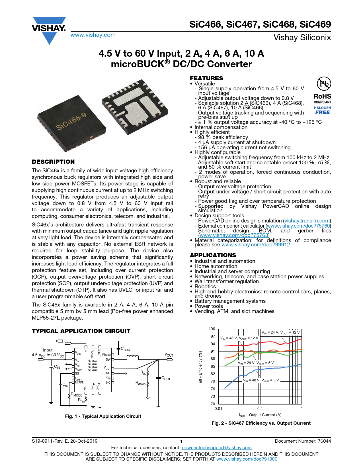 SiC466, SiC467, SiC468, SiC469. 4.5 V to 60 V Input, 2 A, 4 A, 6 A, 10 A. microBUCK® DC/DC Converter. FEATURES. DESCRIPTION