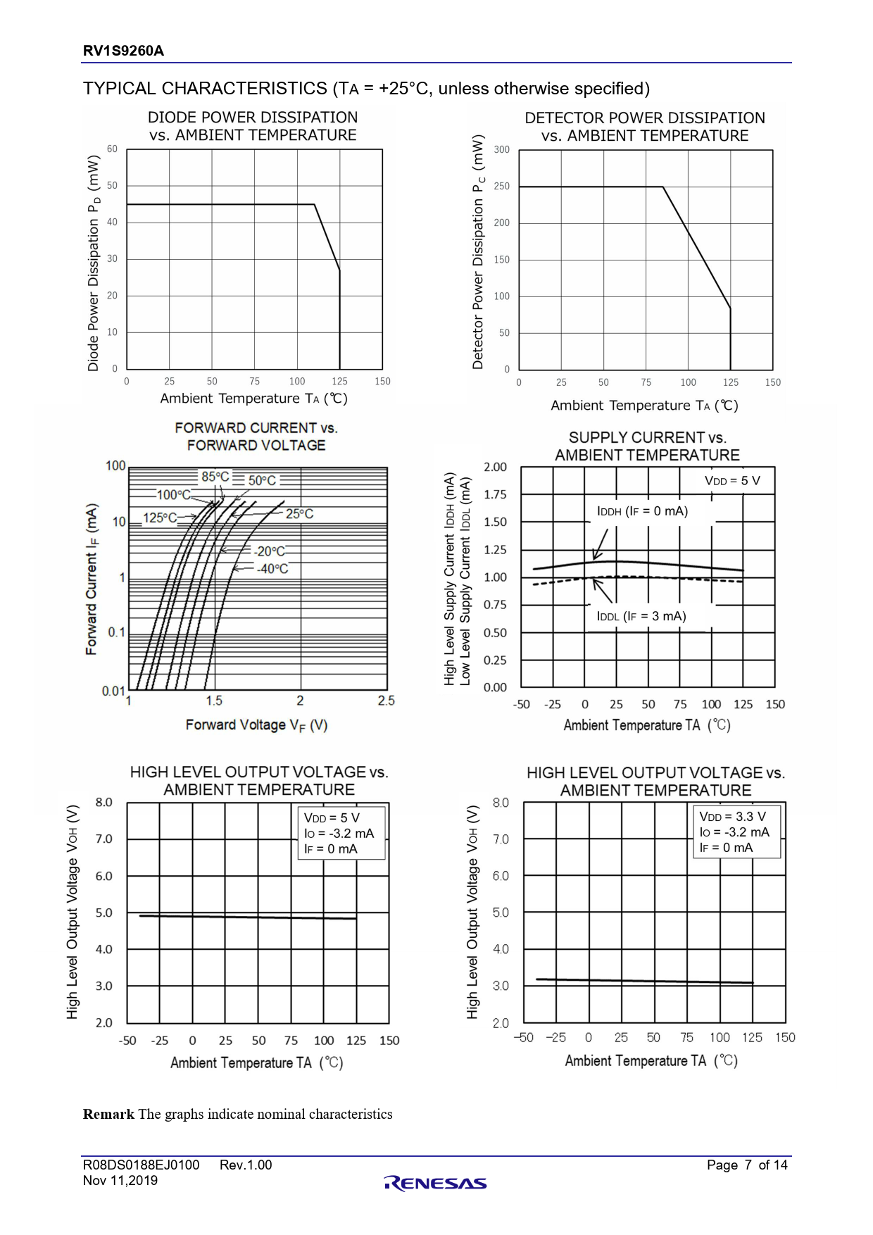 RV1S9260A 章題 TYPICAL CHARACTERISTICS (TA = +25°C, unless otherwise specified) Remark The graphs indicate nominal characteristics R08DS0188EJ0100 Rev.1.00 Page 7 of 14 Nov 11,2019