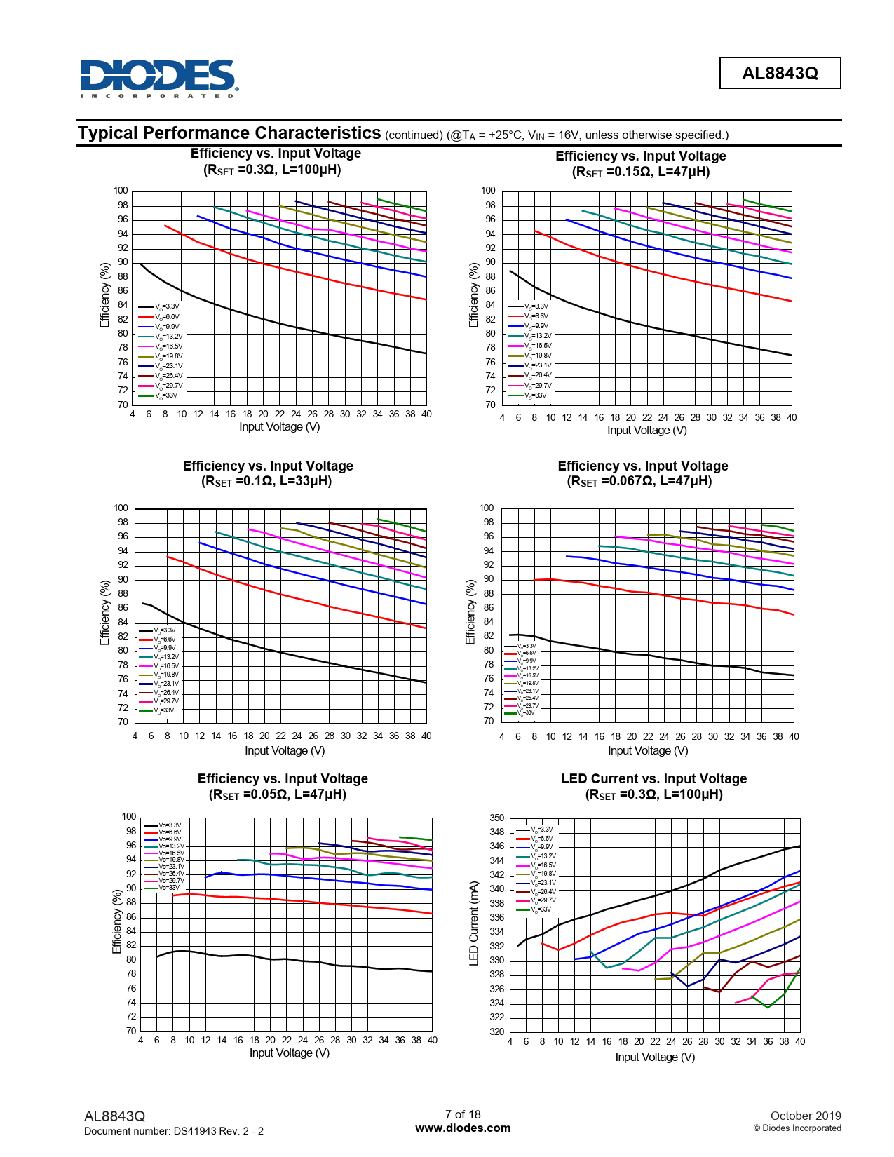 | 页数 / 页 | 18 / 7 — AL8843Q. Typical Performance Characteristics. Efficiency. vs. Input … |
