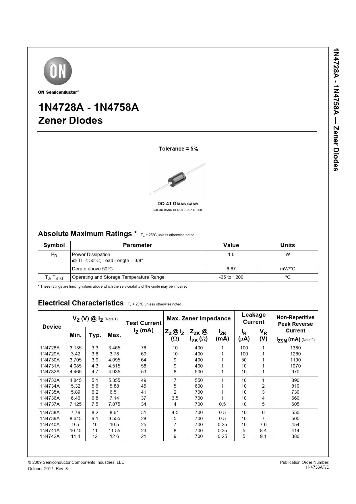 Datasheet 1N4728A-1N4758A (ON Semiconductor)