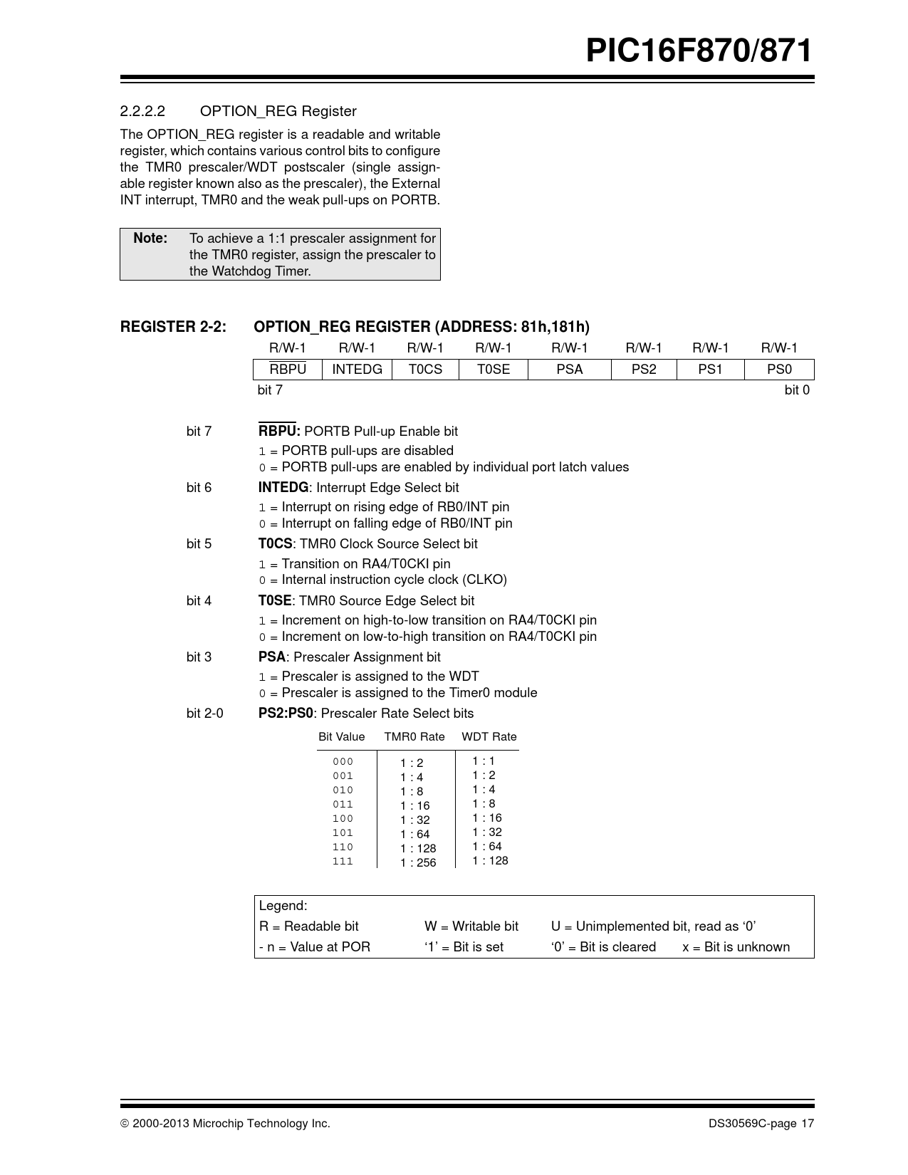 | 页数 / 页 | 172 / 17 — PIC16F870/871. Note:. REGISTER 2-2:. OPTION_REG REGISTER (ADDRESS: … |