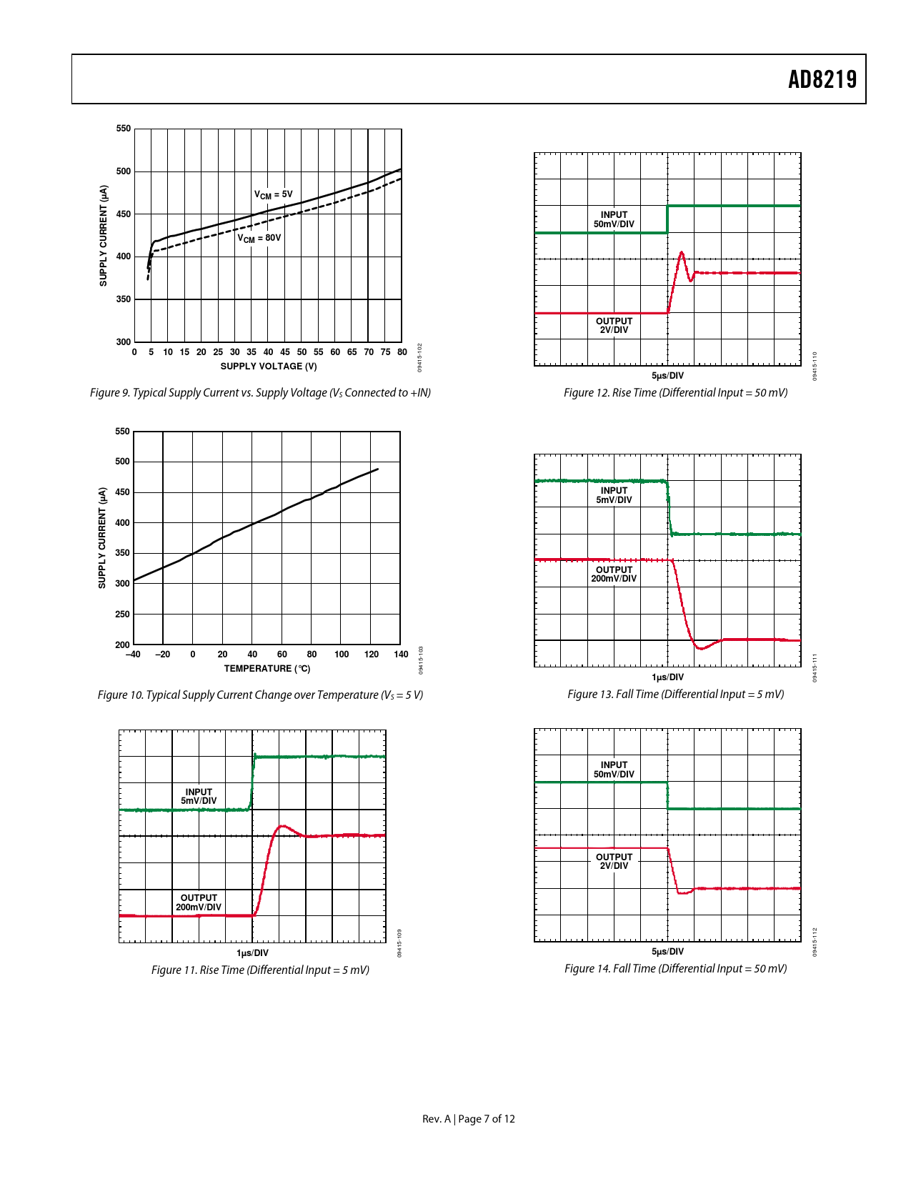 41 09 Figure 9. Typical Supply Current vs. Supply Voltage (VS Connected to +IN) Figure 12. Rise Time (Differential Input = 50 mV)