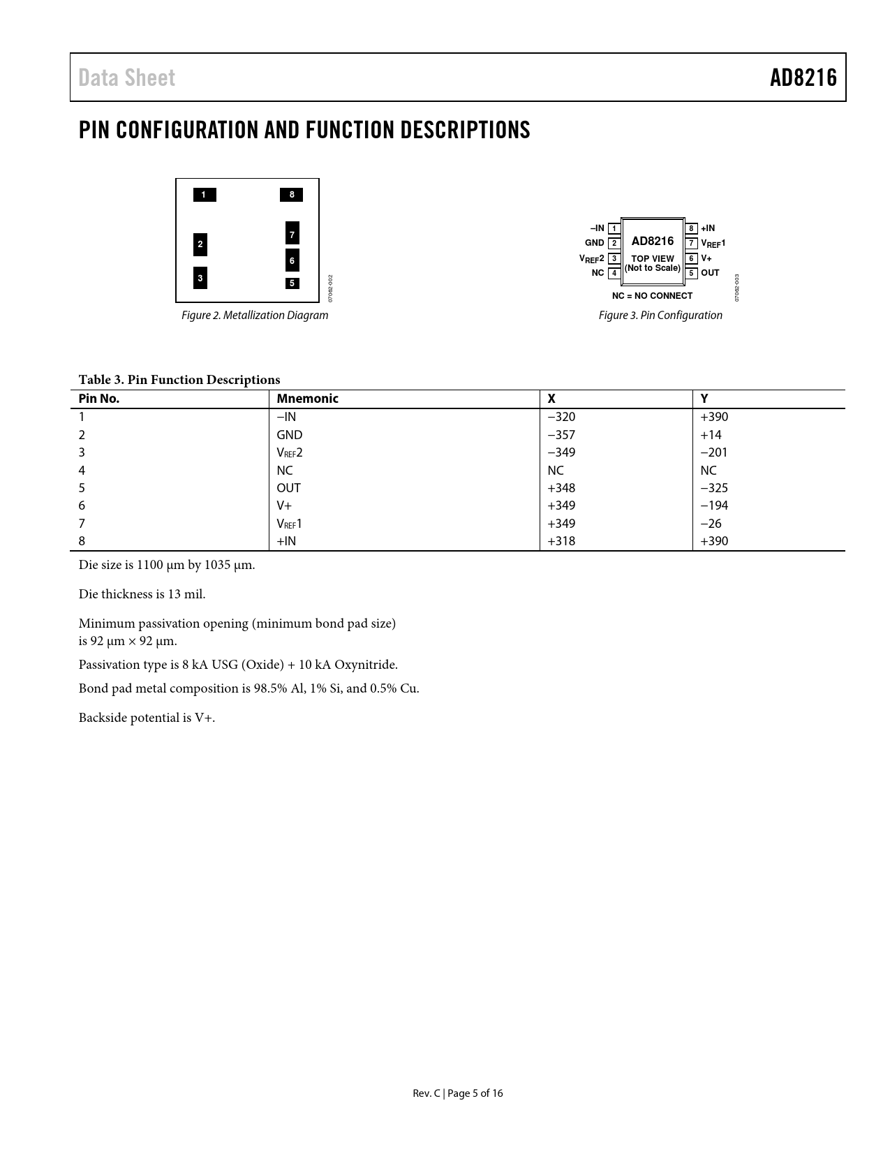Data Sheet AD8216 PIN CONFIGURATION AND FUNCTION DESCRIPTIONS –IN +IN GND VREF1 VREF2 3 TOP VIEW (Not to Scale) OUT