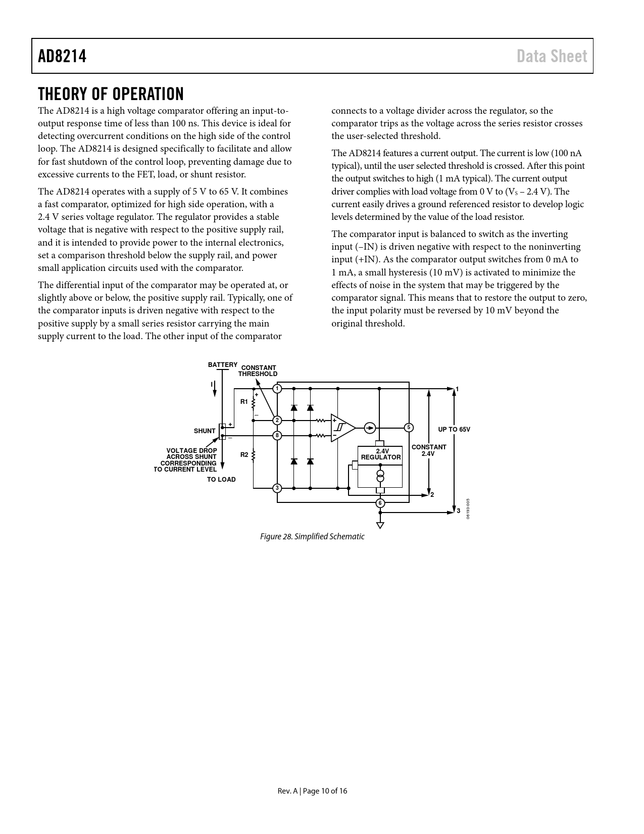 AD8214. Data Sheet. THEORY OF OPERATION. BATTERY CONSTANT. THRESHOLD. SHUNT. UP TO 65V. CONSTANT. VOLTAGE DROP. 2.4V. ACROSS SHUNT. REGULATOR