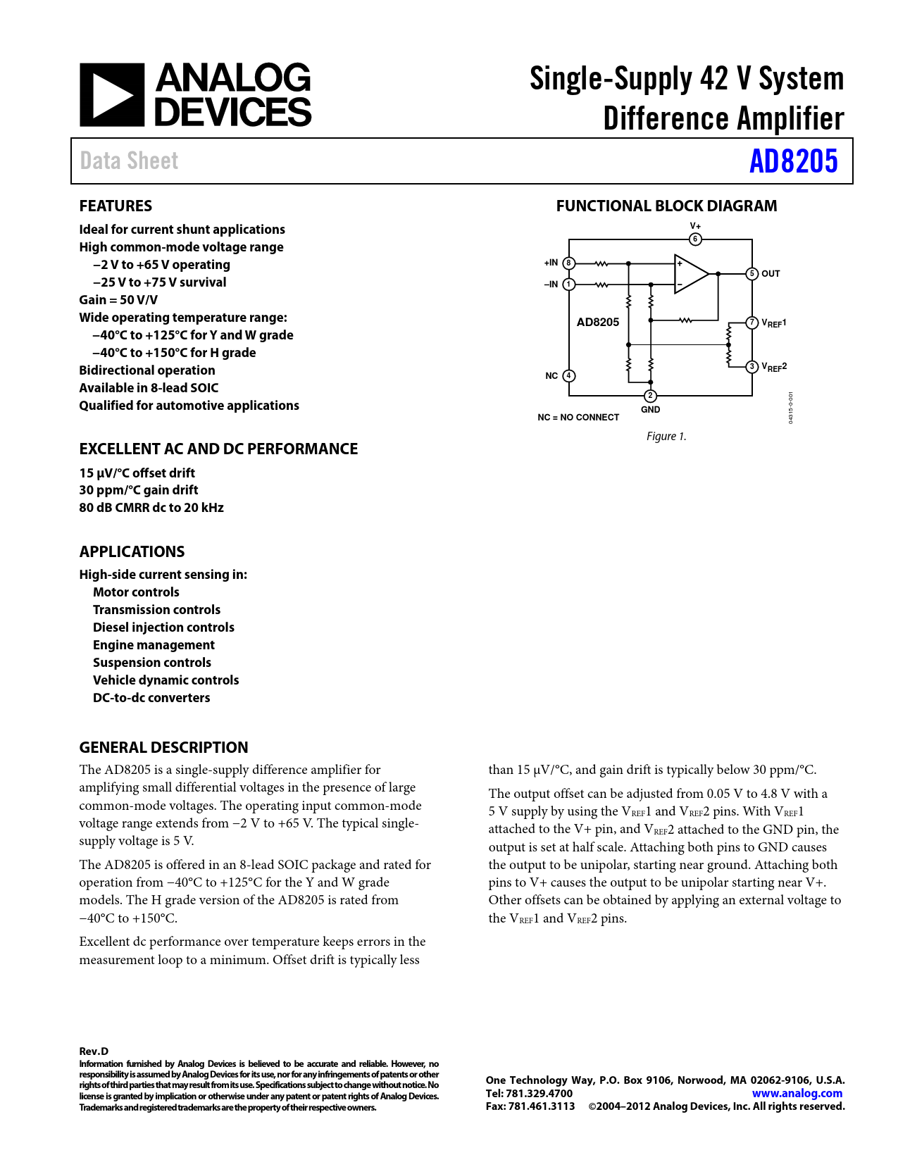 | 页数 / 页 | 12 / 1 — Single-Supply 42 V System. Difference Amplifier. Data Sheet. AD8205. … |