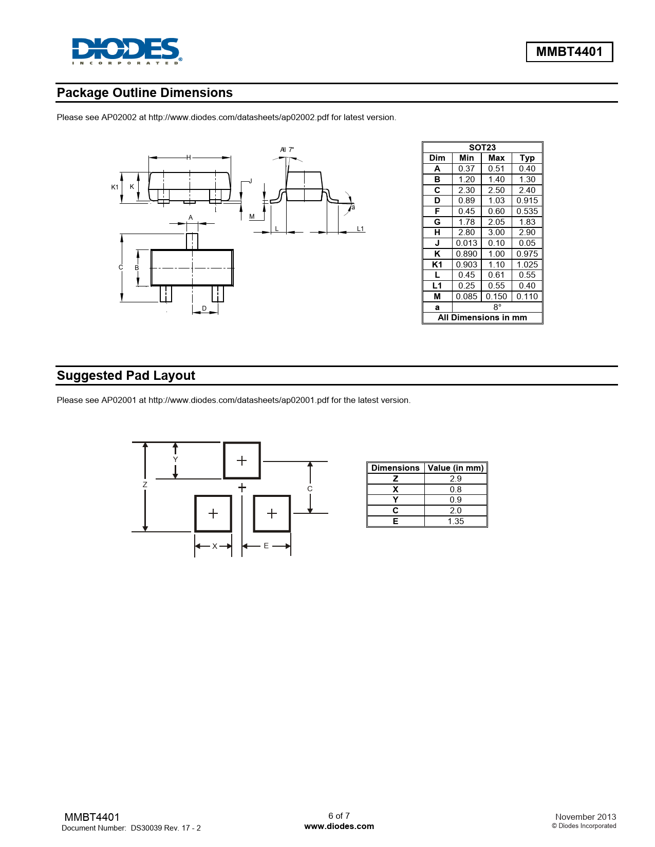 MMBT4401. Package Outline Dimensions. SOT23. Dim Min Max Typ. All Dimensions in mm. Suggested Pad Layout. Dimensions Value (in mm)