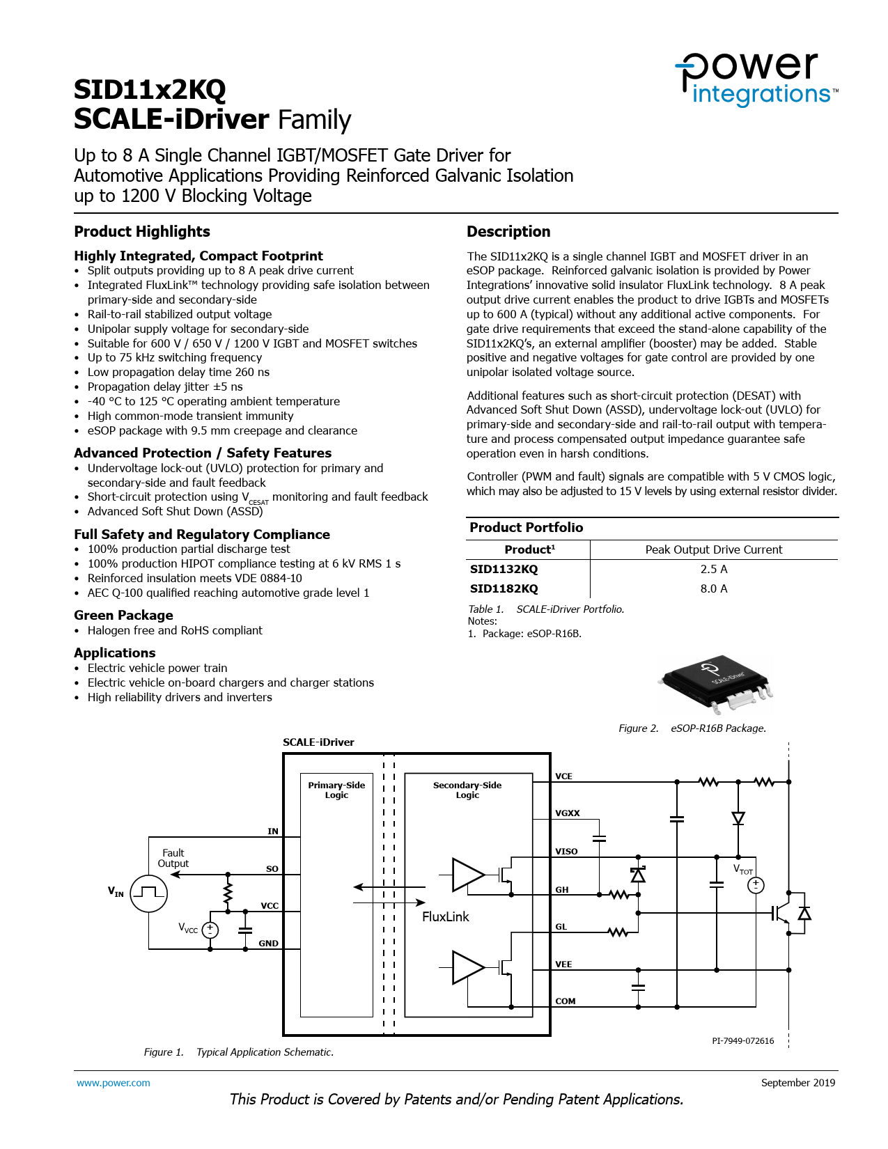 Table 1. SCALE-iDriver Portfolio. Notes: • Halogen free and RoHS compliant 1. Package: eSOP-R16B.