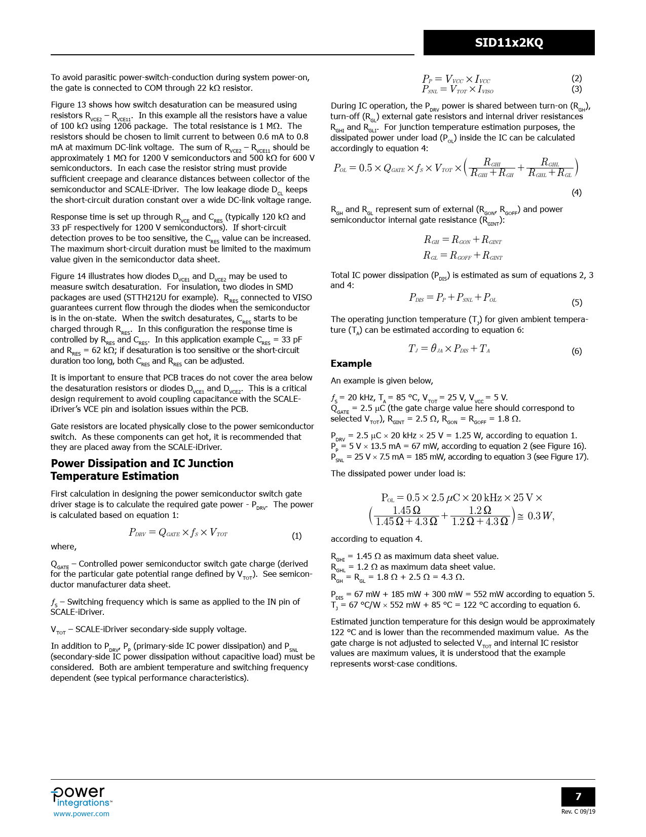 页数 / 页22 / 7 — SID11x2KQ. Example. Power Dissipation and IC Junction. Temperature …