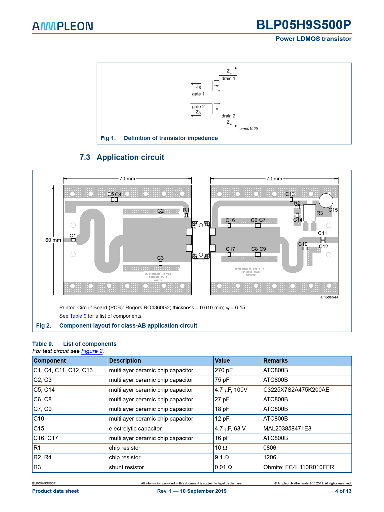 BLP05H9S500P. Power LDMOS transistor. Fig 1. Definition of transistor impedance. 7.3 Application circuit. Fig 2