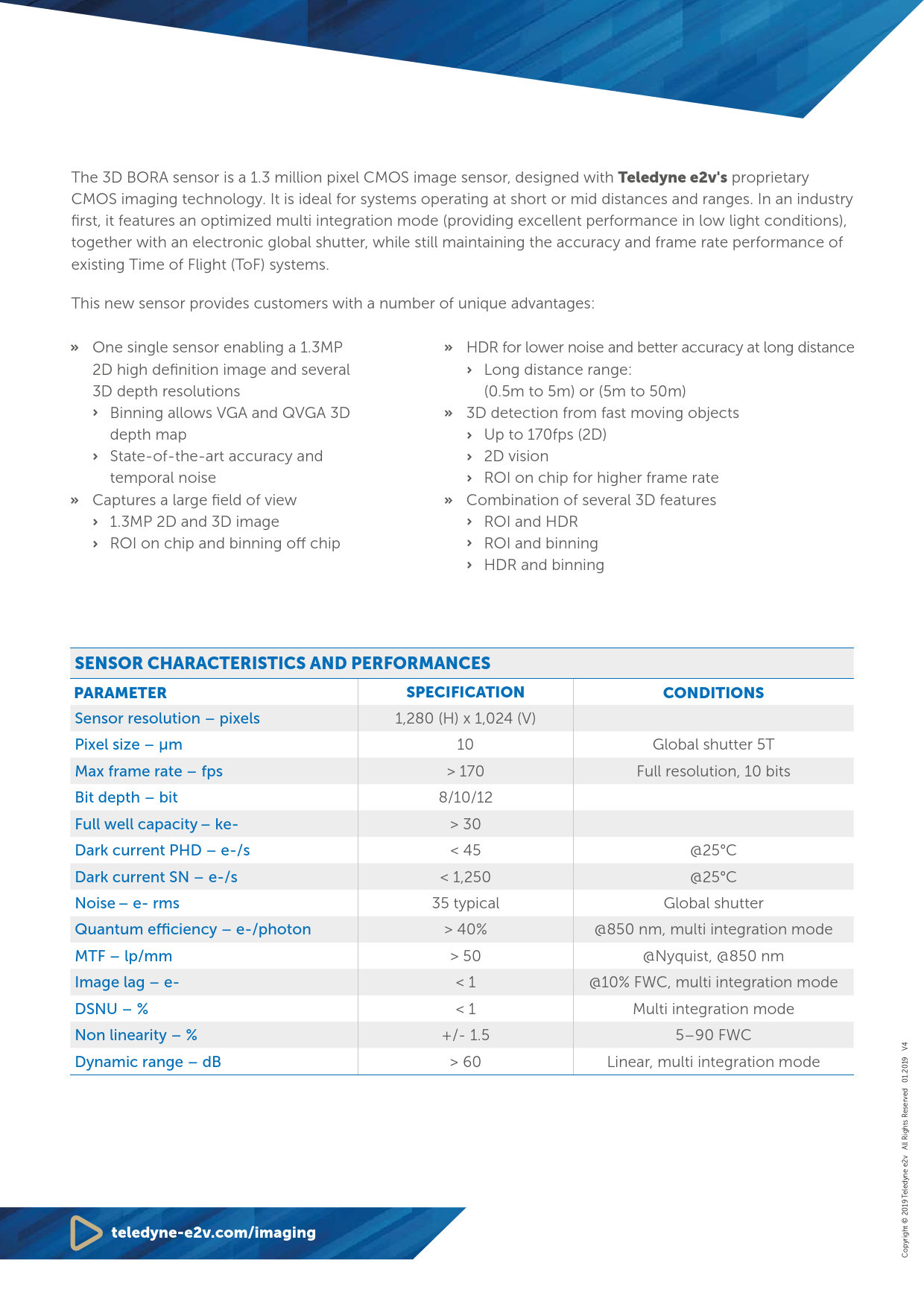Teledyne e2v's. SENSOR CHARACTERISTICS AND PERFORMANCES. PARAMETER. SPECIFICATION. CONDITIONS. teledyne-e2v.com/imaging