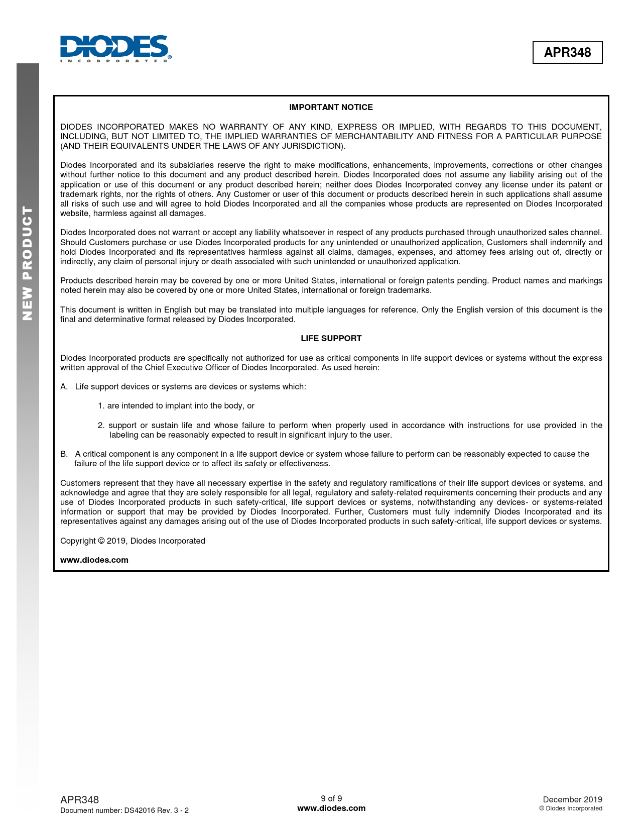 | 页数 / 页 | 9 / 9 — APR348. IMPORTANT NOTICE. LIFE SUPPORT. www.diodes.com |