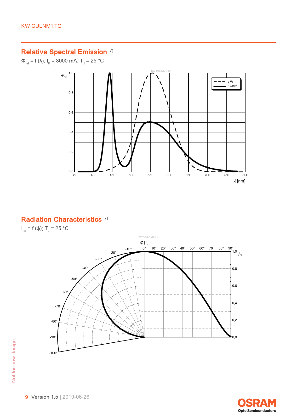 link. to. page. 23. link. to. page. 23. KW. CULNM1.TG. Relative. Spectral. Emission. 7). Φ. =. f. (λ);. I. =. 3000. mA;. T. =. 25. °C. rel. F. J. KW. CULNM1.TG. 1,0. Φrel. :. Vλ. :. white. 0,8