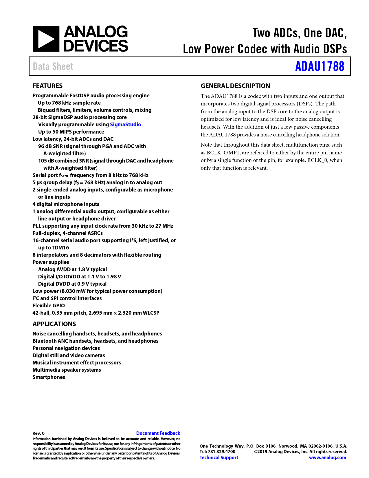 Datasheet ADAU1788 (Analog Devices)
