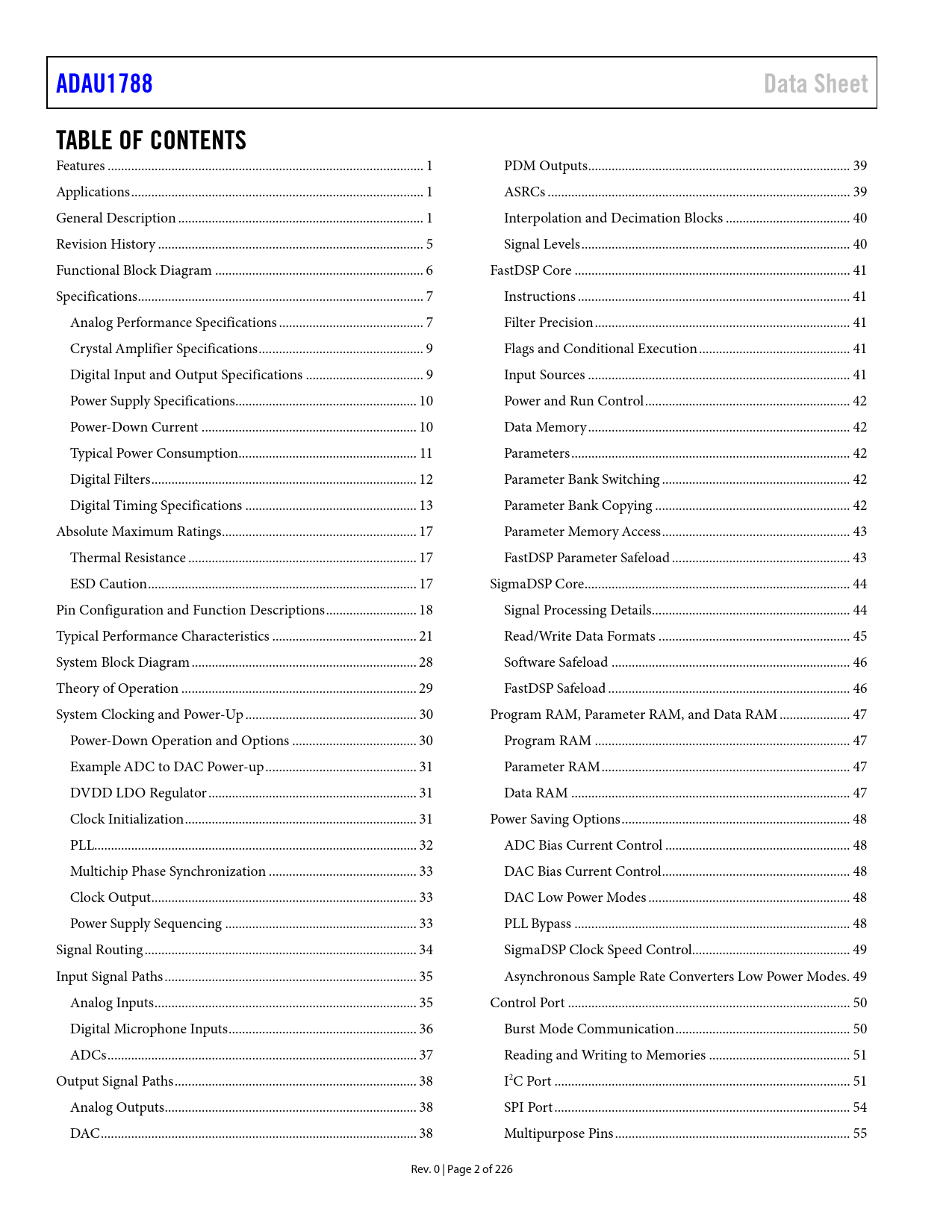 页数 / 页226 / 2 — ADAU1788. Data Sheet. TABLE OF CONTENTS