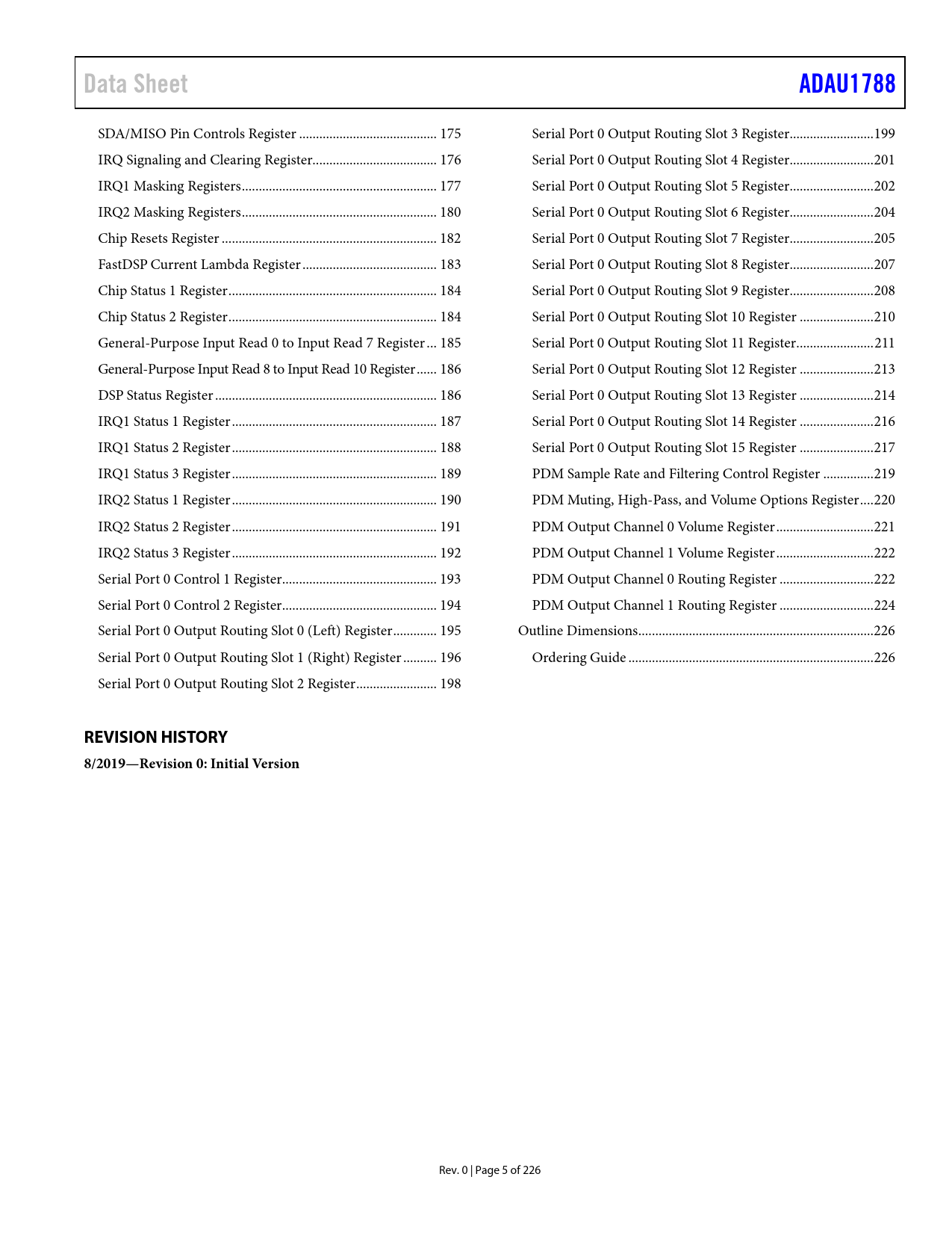 页数 / 页226 / 5 — Data Sheet. ADAU1788. REVISION HISTORY 8/2019—Revision 0: Initial Version