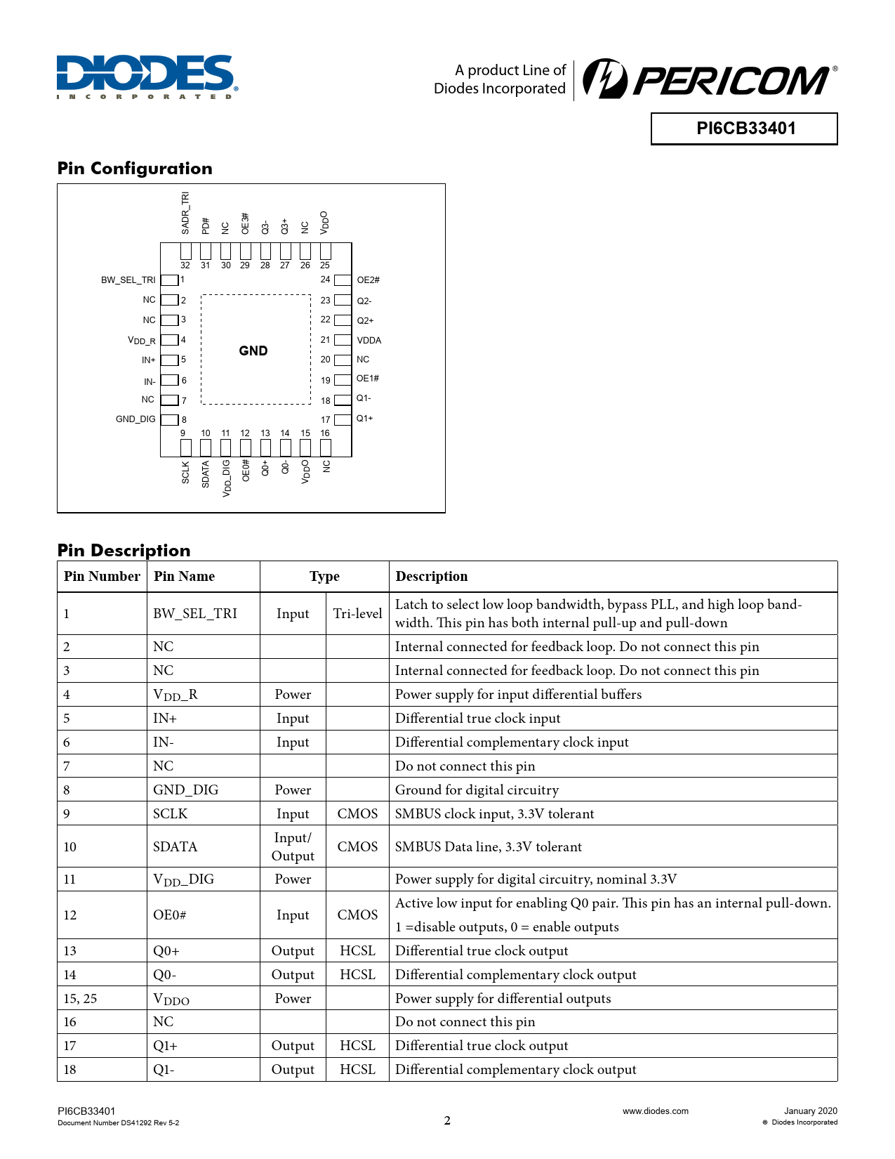 PI6CB33401. Pin Configuration. GND. Pin Description. Pin Number Pin Name. Type. Description