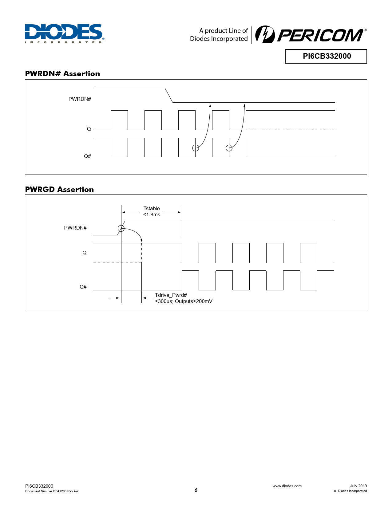 Tstable <1.8ms PWRDN# Q Q# Tdrive_Pwrd# <300us; Outputs>200mV PI6CB332000 www.diodes.com July 2019 Document Number DS41283 Rev 4-2 6 Diodes Incorporated