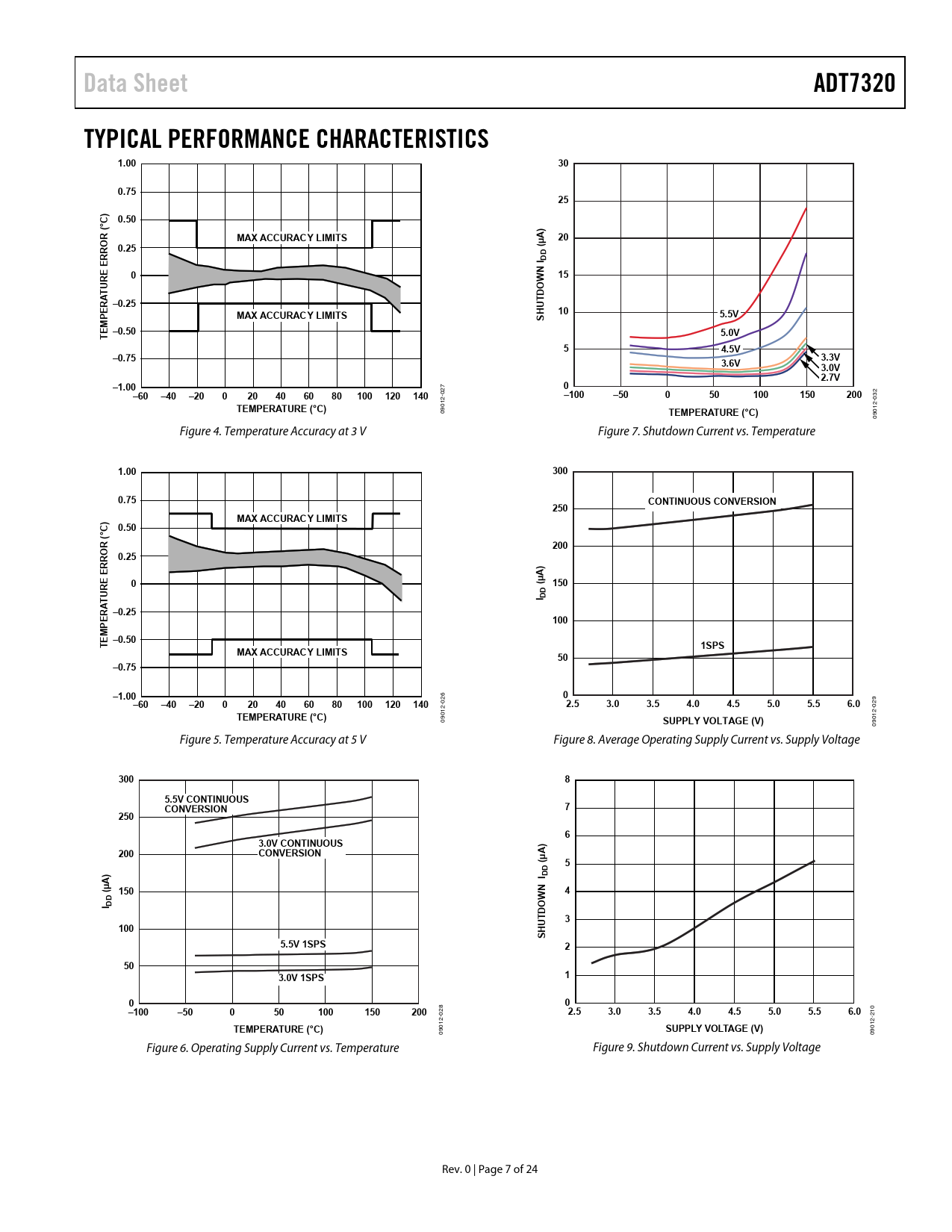 Data Sheet. ADT7320. TYPICAL PERFORMANCE CHARACTERISTICS. 1.00. 0.75. 0.50. (°C). MAX ACCURACY LIMITS. 0.25. (µA. RRO. N I. URE T. A R –0.25. HUT
