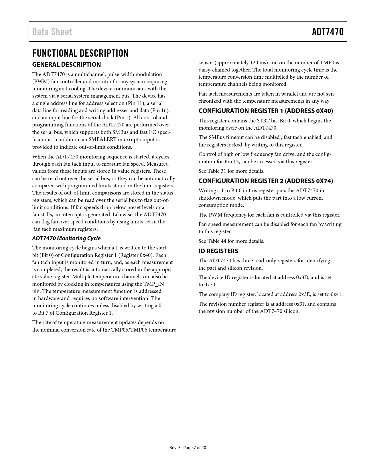 页数 / 页40 / 7 — Data Sheet. ADT7470. FUNCTIONAL DESCRIPTION GENERAL DESCRIPTION. …