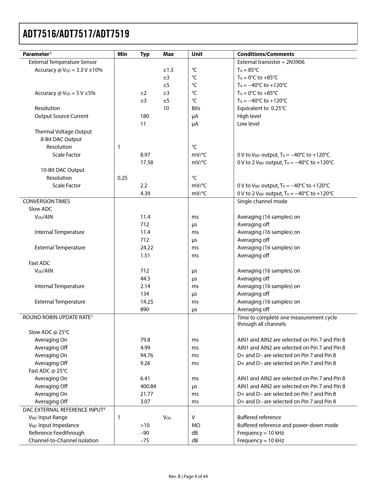 页数 / 页44 / 4 — ADT7516/ADT7517/ADT7519. Parameter1. Min. Typ. Max. Unit. …