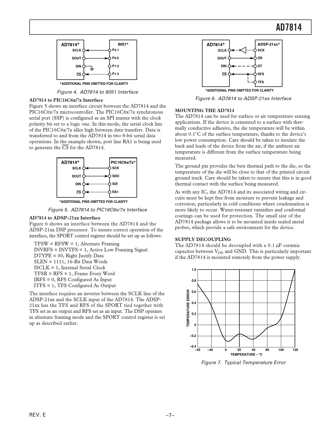corrosion, particularly in cold conditions where condensation is Figure 5. AD7814 to PIC16C6x/7x Interface more likely to occur. Water-resistant varnishes and conformal coatings can be used for protection. The small size of the
