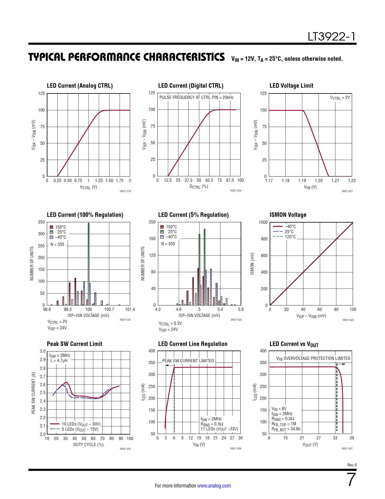 TYPICAL PERFORMANCE CHARACTERISTICS VIN = 12V, TA = 25°C, unless otherwise noted. LED Current (Analog CTRL) LED Current (Digital CTRL) LED Voltage Limit