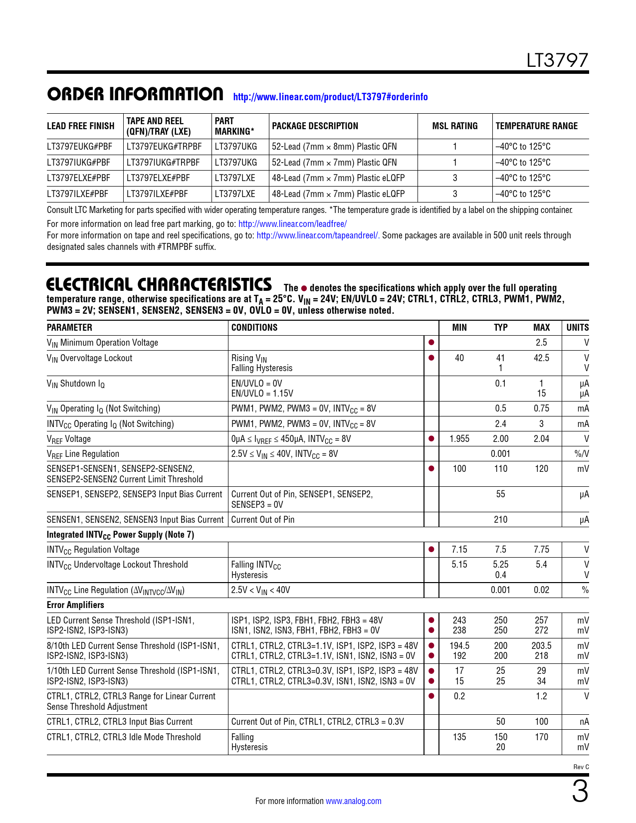ORDER INFORMATION http://www.linear.com/product/LT3797#orderinfo. LEAD FREE FINISH. TAPE AND REEL. PART. (QFN)/TRAY (LXE)