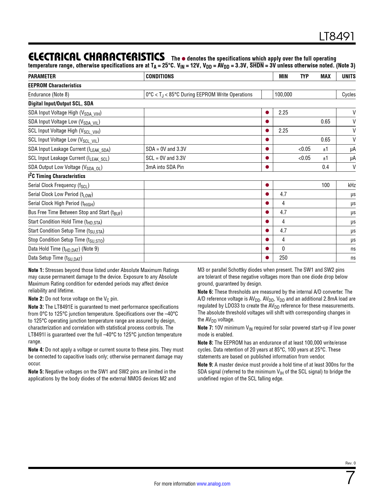 denotes the specifications which apply over the full operating temperature range, otherwise specifications are at TA = 25°C. VIN = 12V, VDD = AVDD = 3.3V, SHDN = 3V unless otherwise noted. (Note 3) PARAMETER CONDITIONS MIN TYP MAX UNITS EEPROM Characteristics
