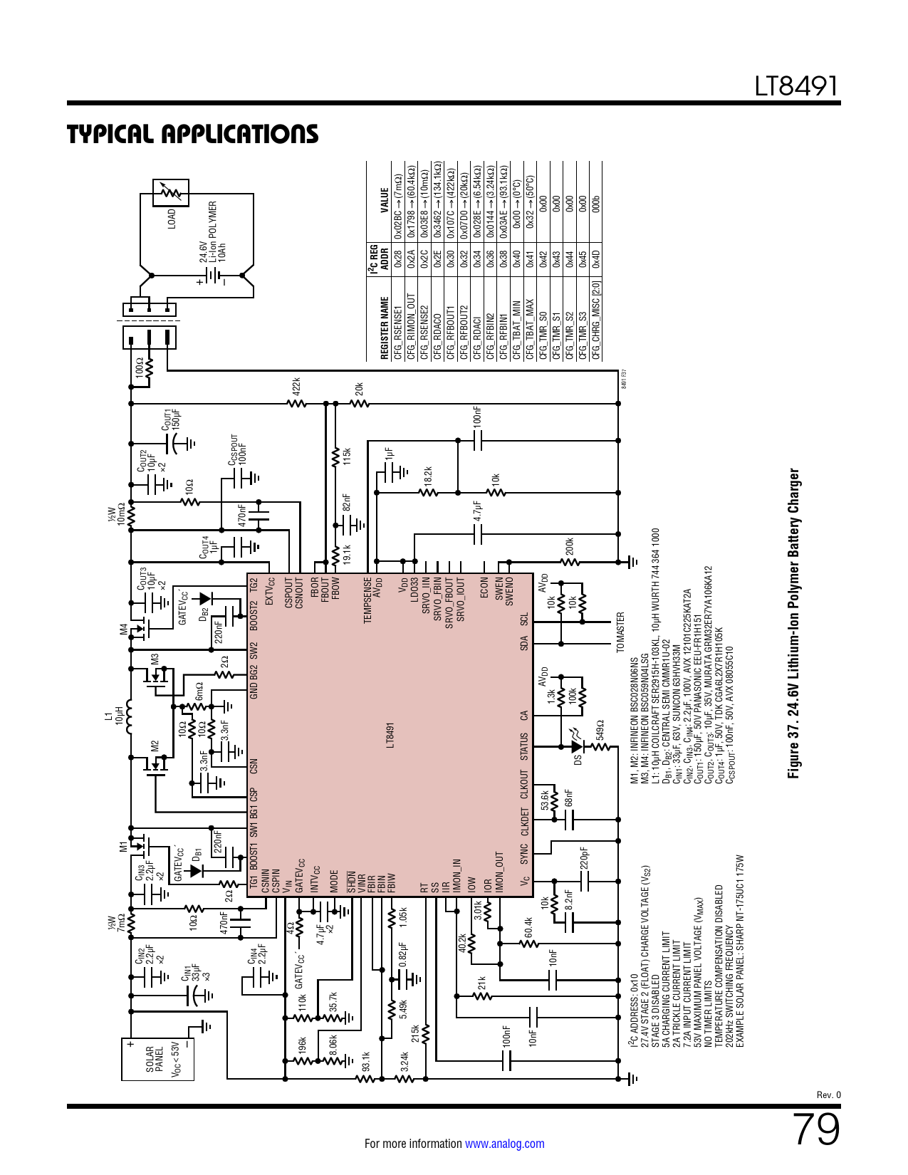 TYPICAL APPLICATIONS. VALUE. 2 C REG. I ADDR. REGISTER NAME. Figure 37. 24.6V Lithium-Ion Polymer Battery Charger