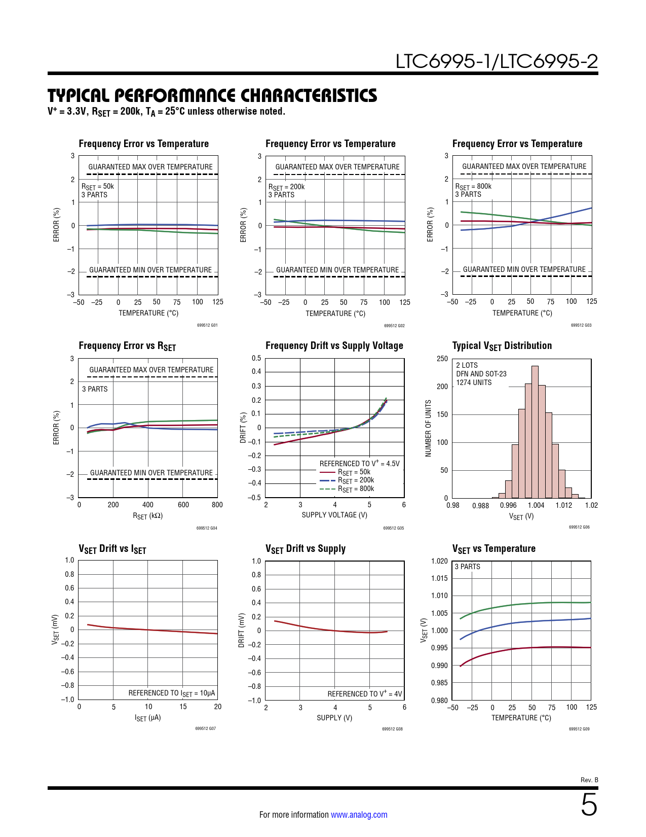 Frequency Error vs RSET Frequency Drift vs Supply Voltage Typical VSET Distribution