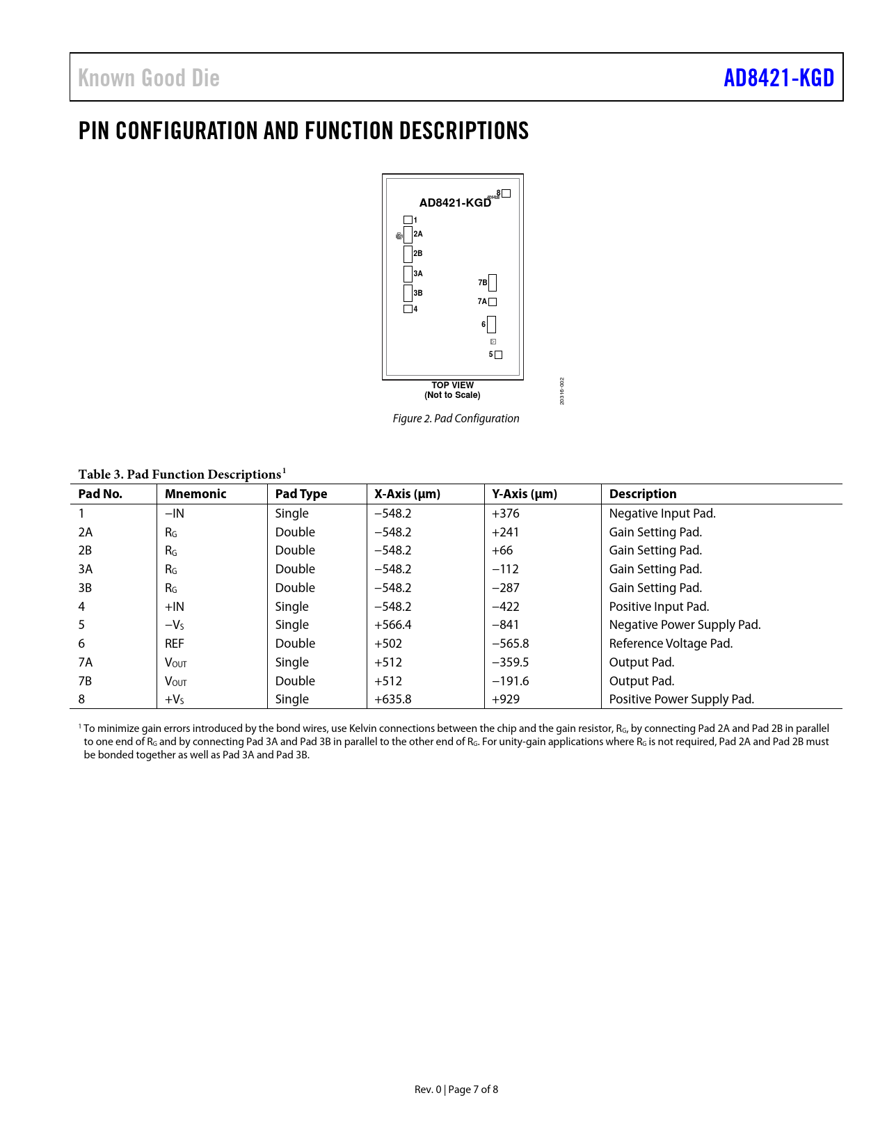Known Good Die AD8421-KGD PIN CONFIGURATION AND FUNCTION DESCRIPTIONS 8 AD8421-KGD 1 2A 2B 3A 7B 3B 7A 4 6 5 TOP VIEW