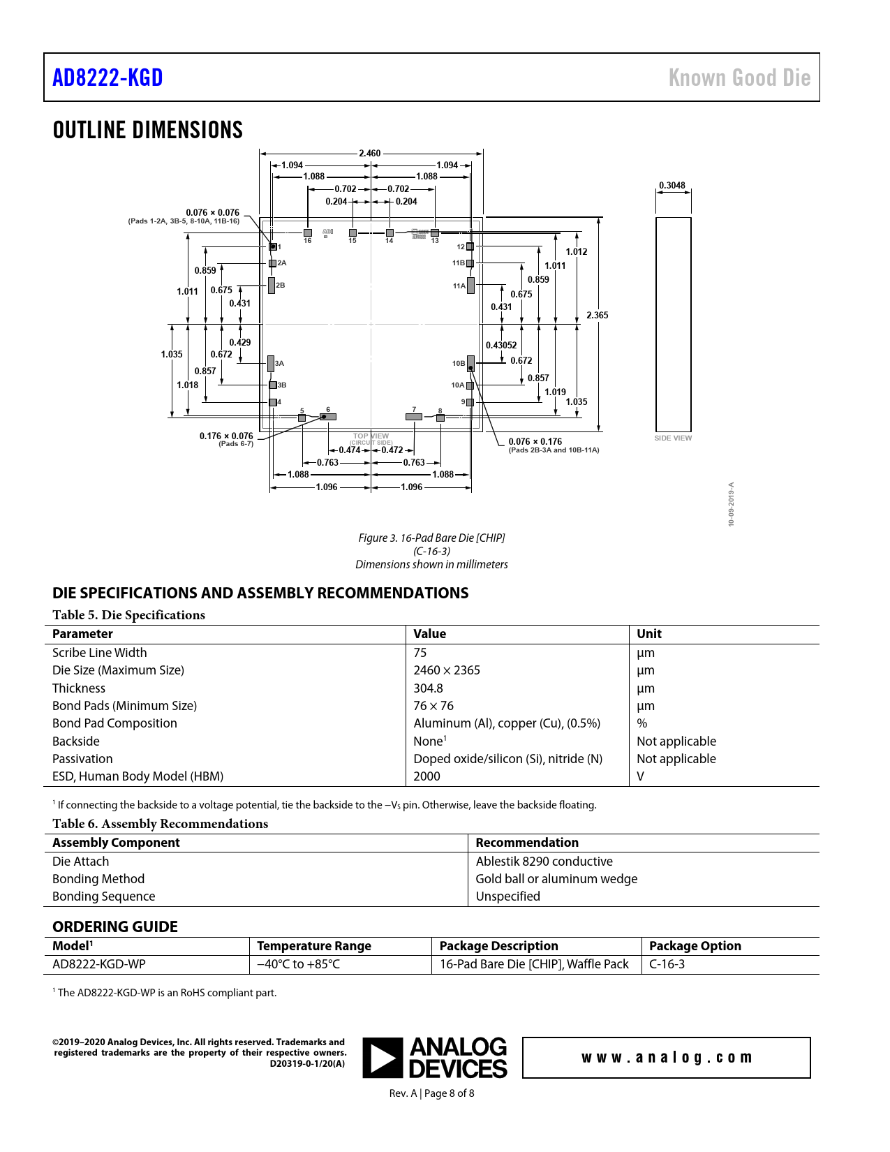 | 页数 / 页 | 8 / 8 — AD8222-KGD. Known Good Die. OUTLINE DIMENSIONS. 2.460. 1.094. 1.088. … |