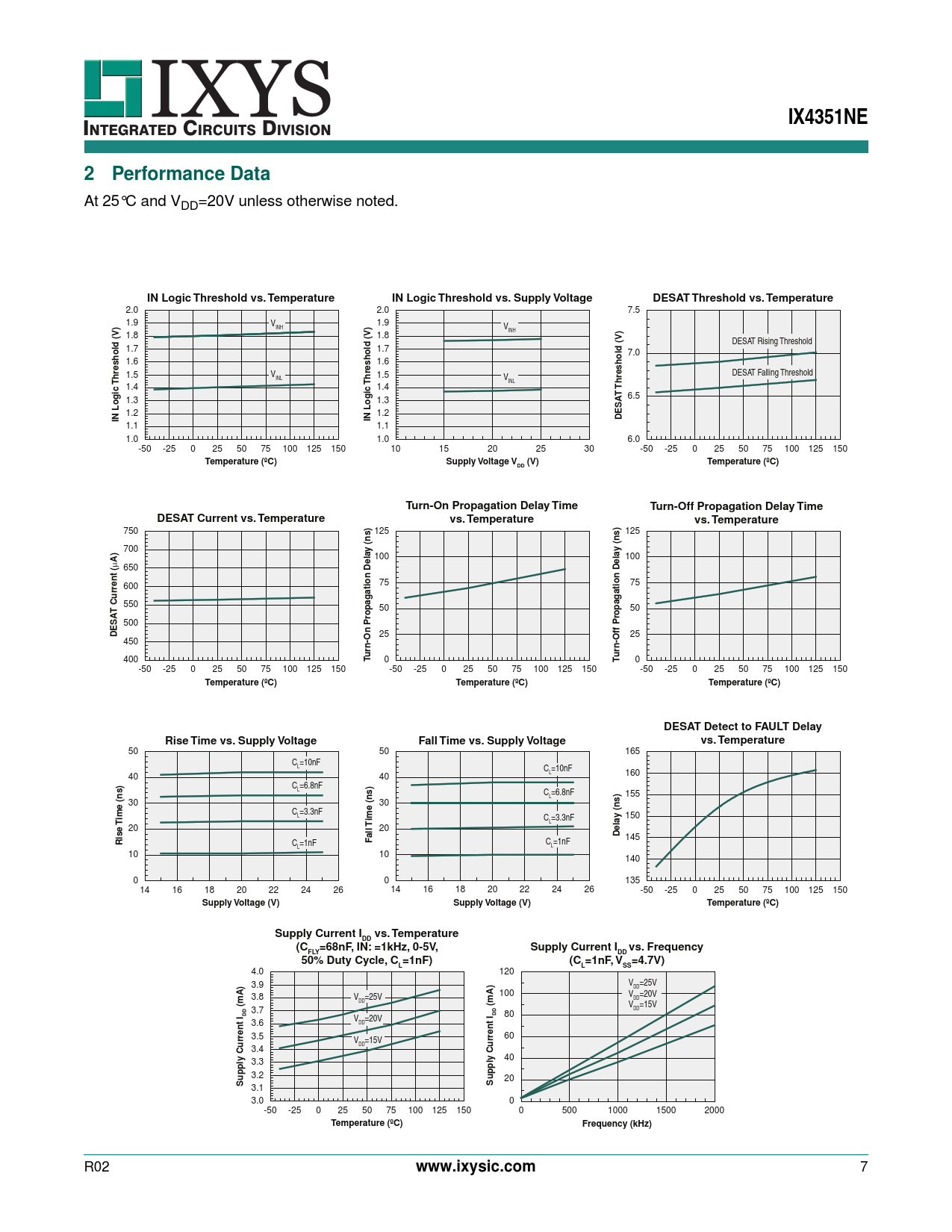 | 页数 / 页 | 12 / 7 — IX4351NE. Performance Data. IN Logic Threshold vs. Temperature. IN Logic … |