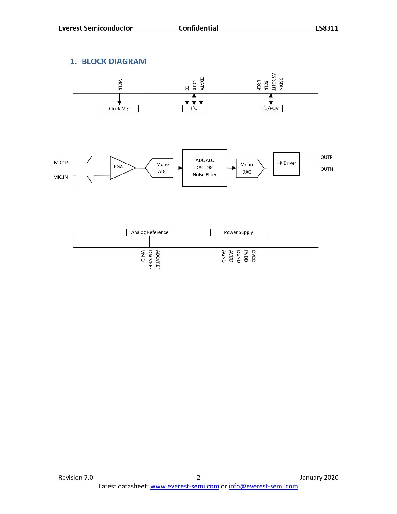 Everest Semiconductor. Confidential. ES8311. 1. BLOCK DIAGRAM