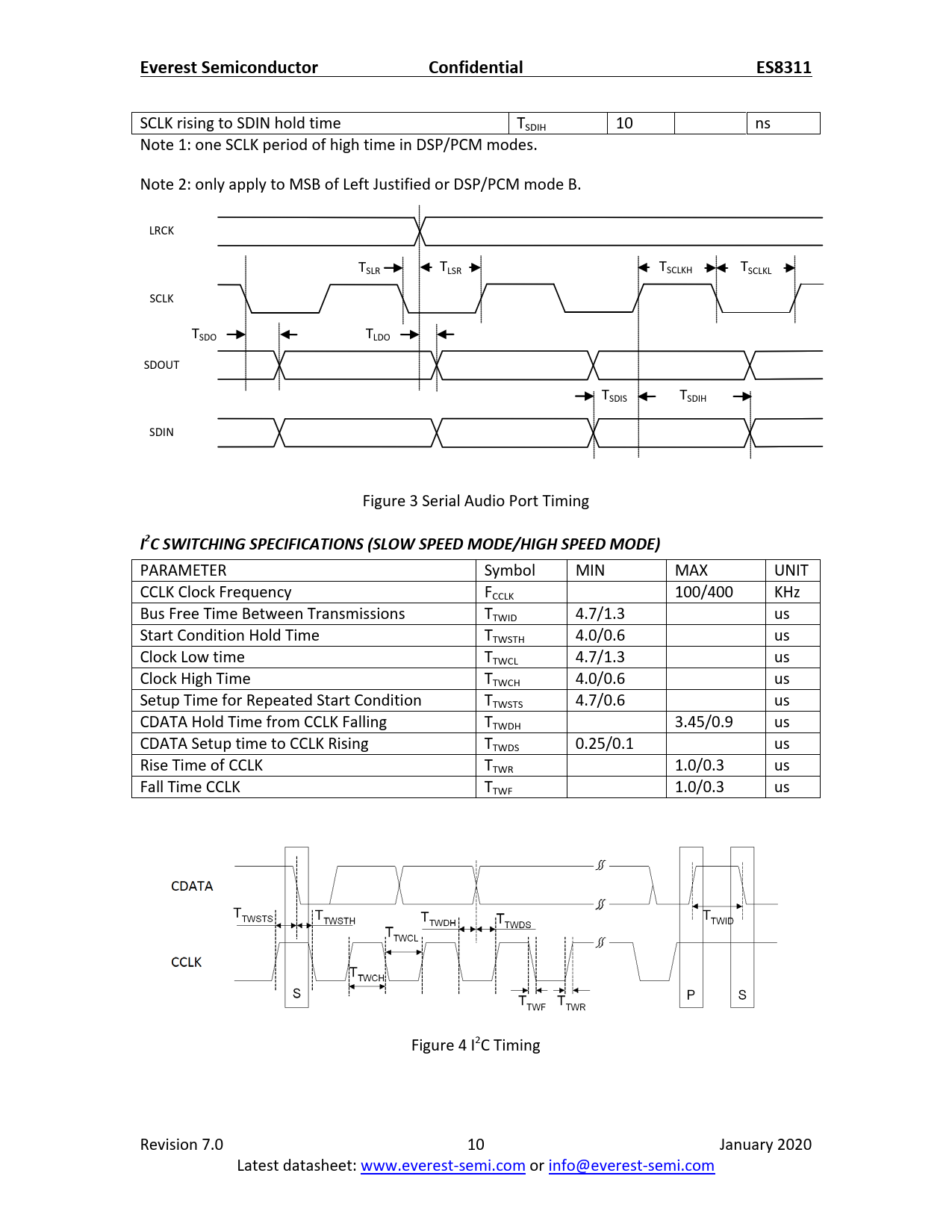 Everest Semiconductor Confidential ES8311 I2C SWITCHING SPECIFICATIONS (SLOW SPEED MODE/HIGH SPEED MODE)