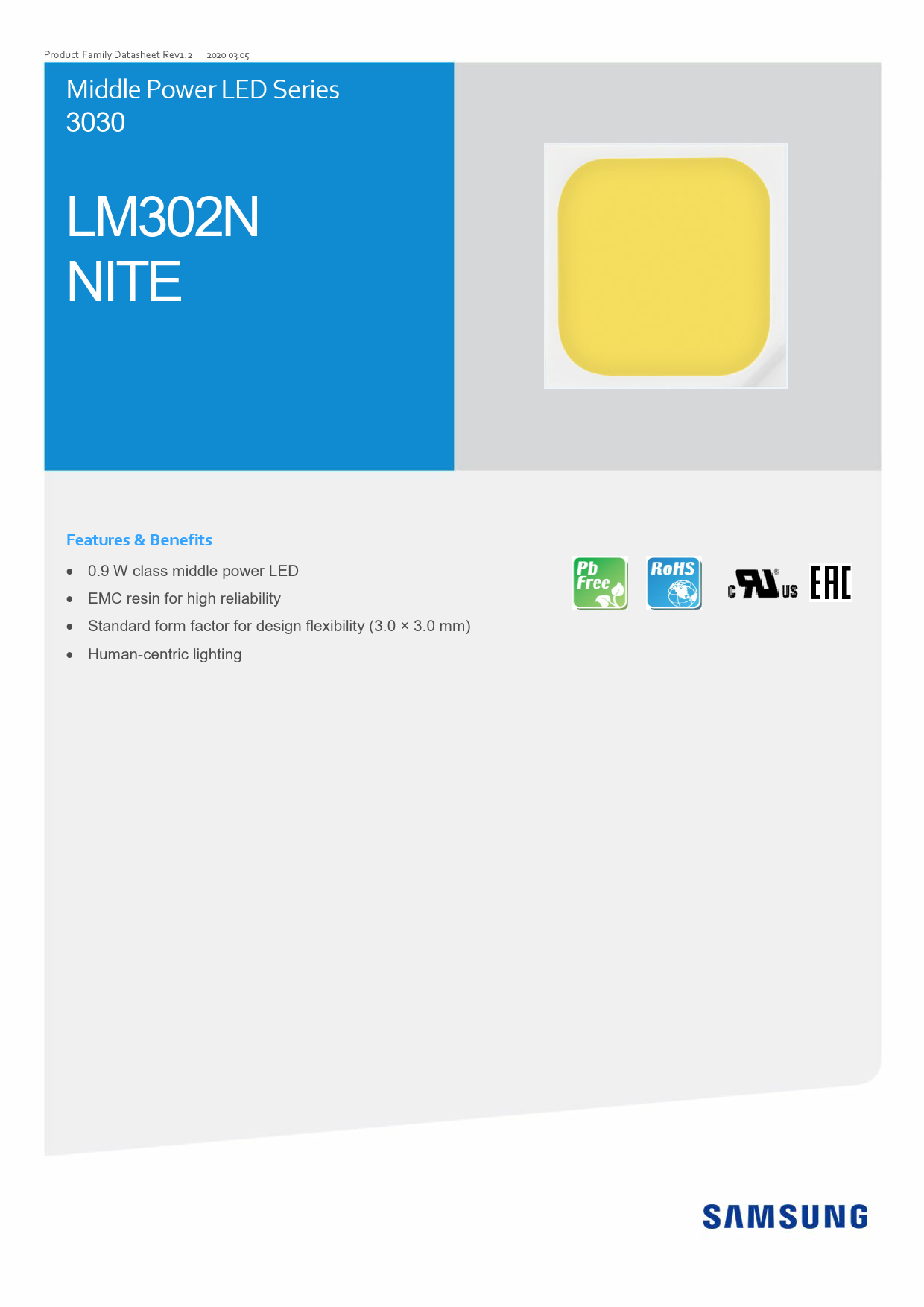 1# Product Family Datasheet Rev1.2 2020.03.05 Middle Power LED Series 3030 LM302N NITE