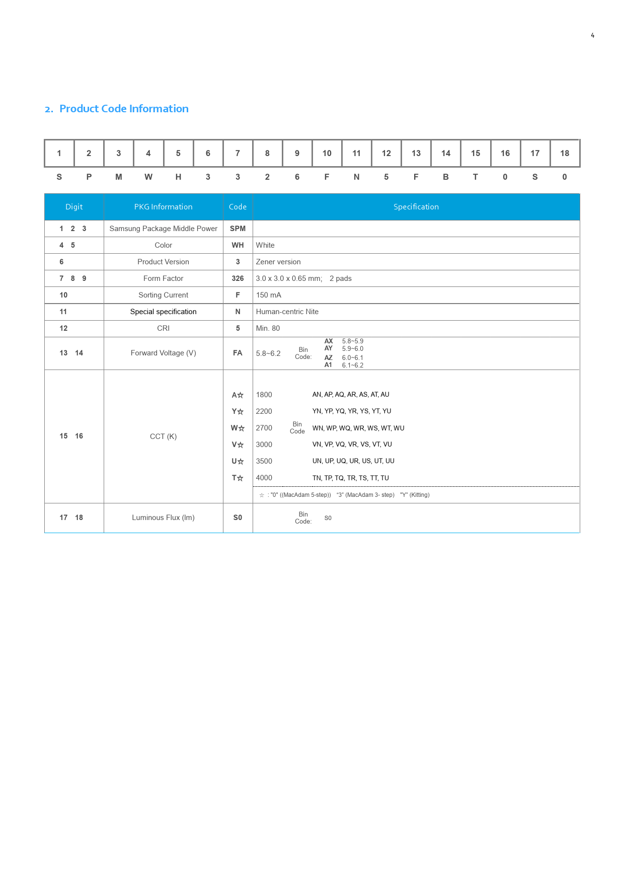 2. Product Code Information 1 2 3 4 5 6 7 8 9 10 11 12 13 14 15 16 17 18 S P M W H 3 3 2 6 F N 5 F B T 0 S 0