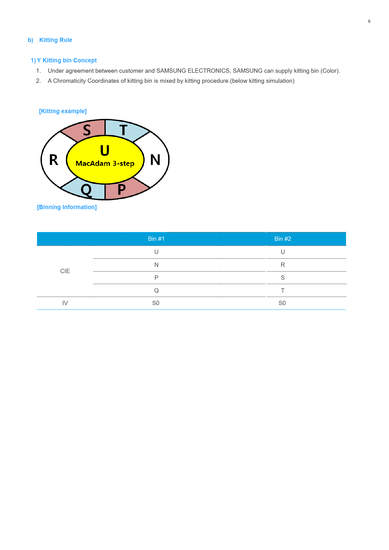 1. Under agreement between customer and SAMSUNG ELECTRONICS, SAMSUNG can supply kitting bin (Color). 2. A Chromaticity Coordinates of kitting bin is mixed by kitting procedure.(below kitting simulation)