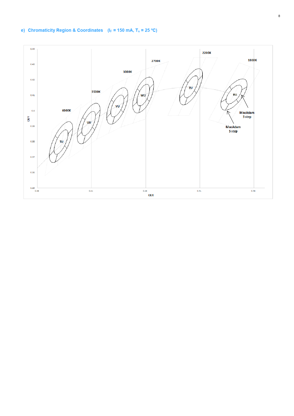 e) Chromaticity Region & Coordinates (IF = 150 mA, Ts = 25 ºC)