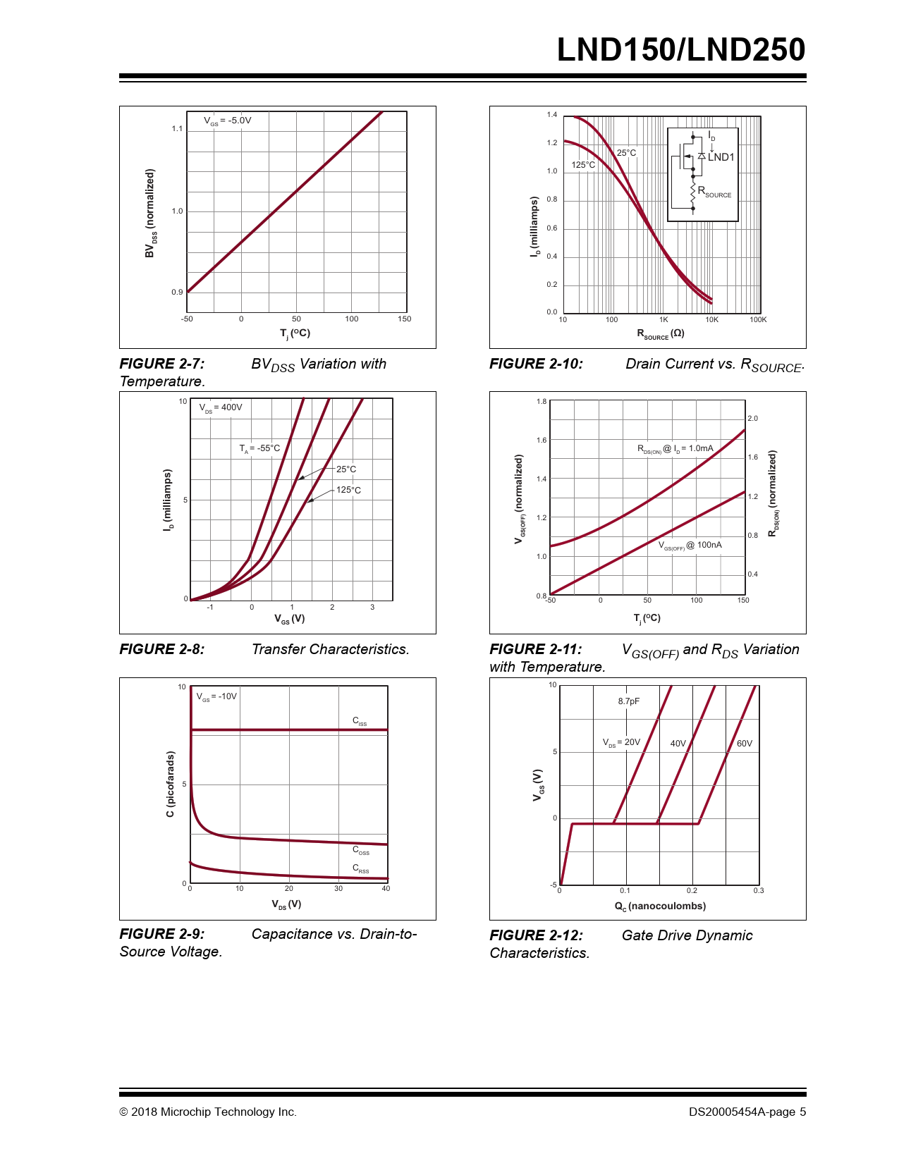 LND150/LND250. (normalized). DSS. (milliamps). I D. T (OC). (Ω). SOURCE. FIGURE 2-7:. FIGURE 2-10:. DS(ON). GS(OFF). (V). FIGURE 2-8:. FIGURE 2-11: