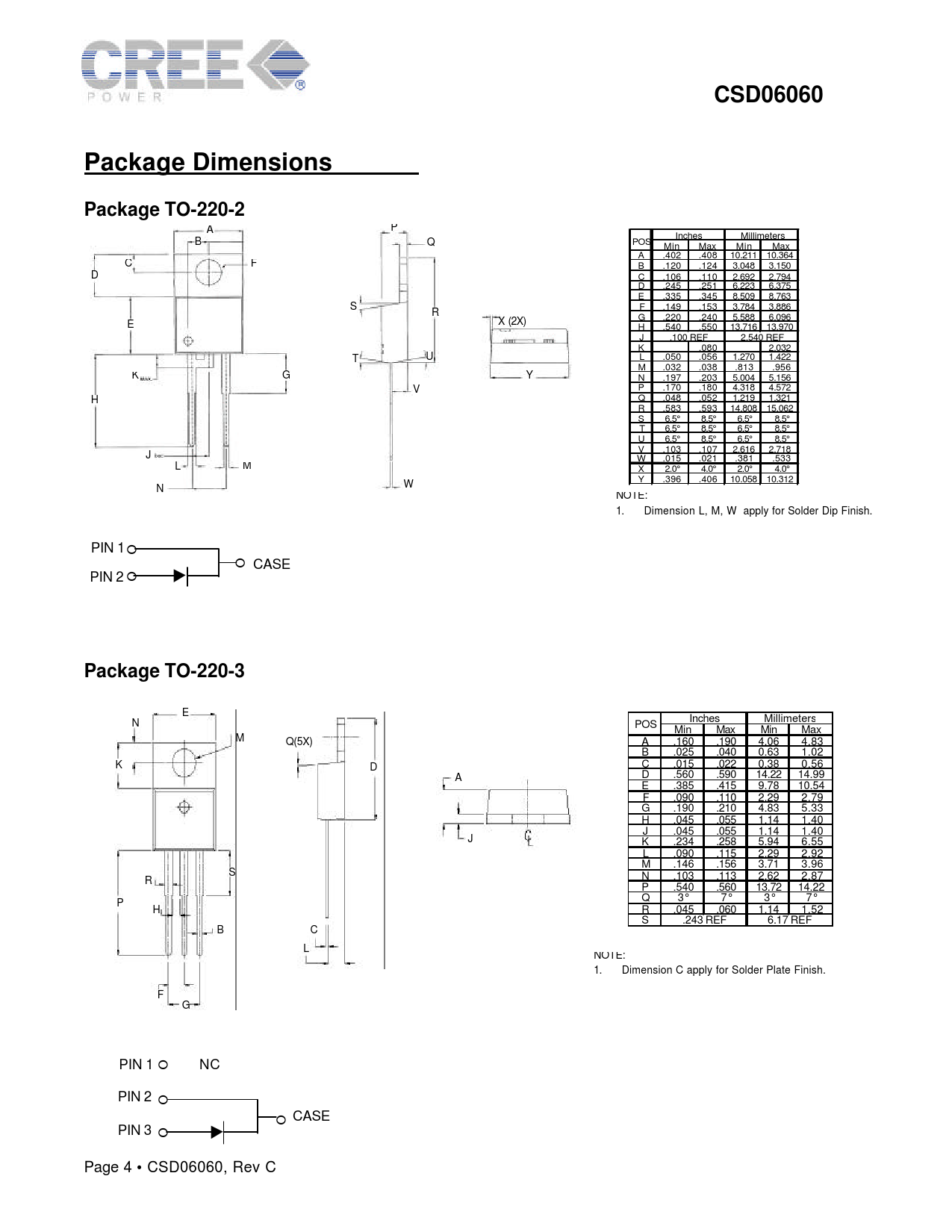 CSD06060 Package Dimensions Package TO-220-2 Package TO-220-3