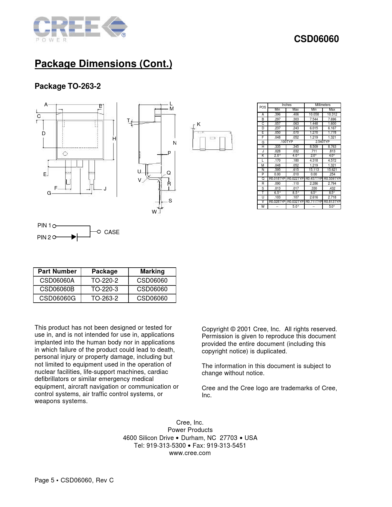 CSD06060. Package Dimensions (Cont.). Package TO-263-2. Part Number. Package. Marking