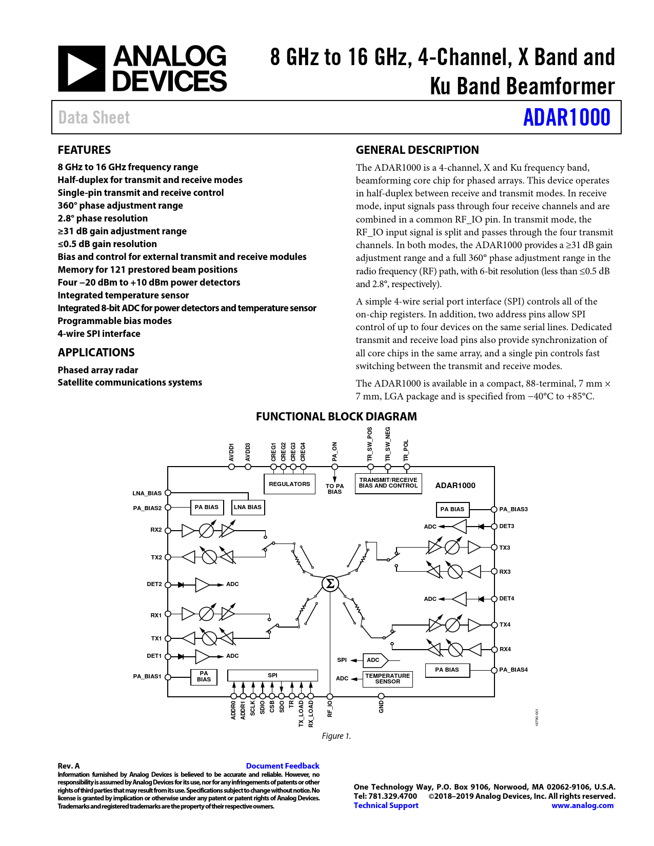 8 GHz to 16 GHz, 4-Channel, X Band and. Ku Band Beamformer. Data Sheet. ADAR1000. FEATURES. GENERAL DESCRIPTION