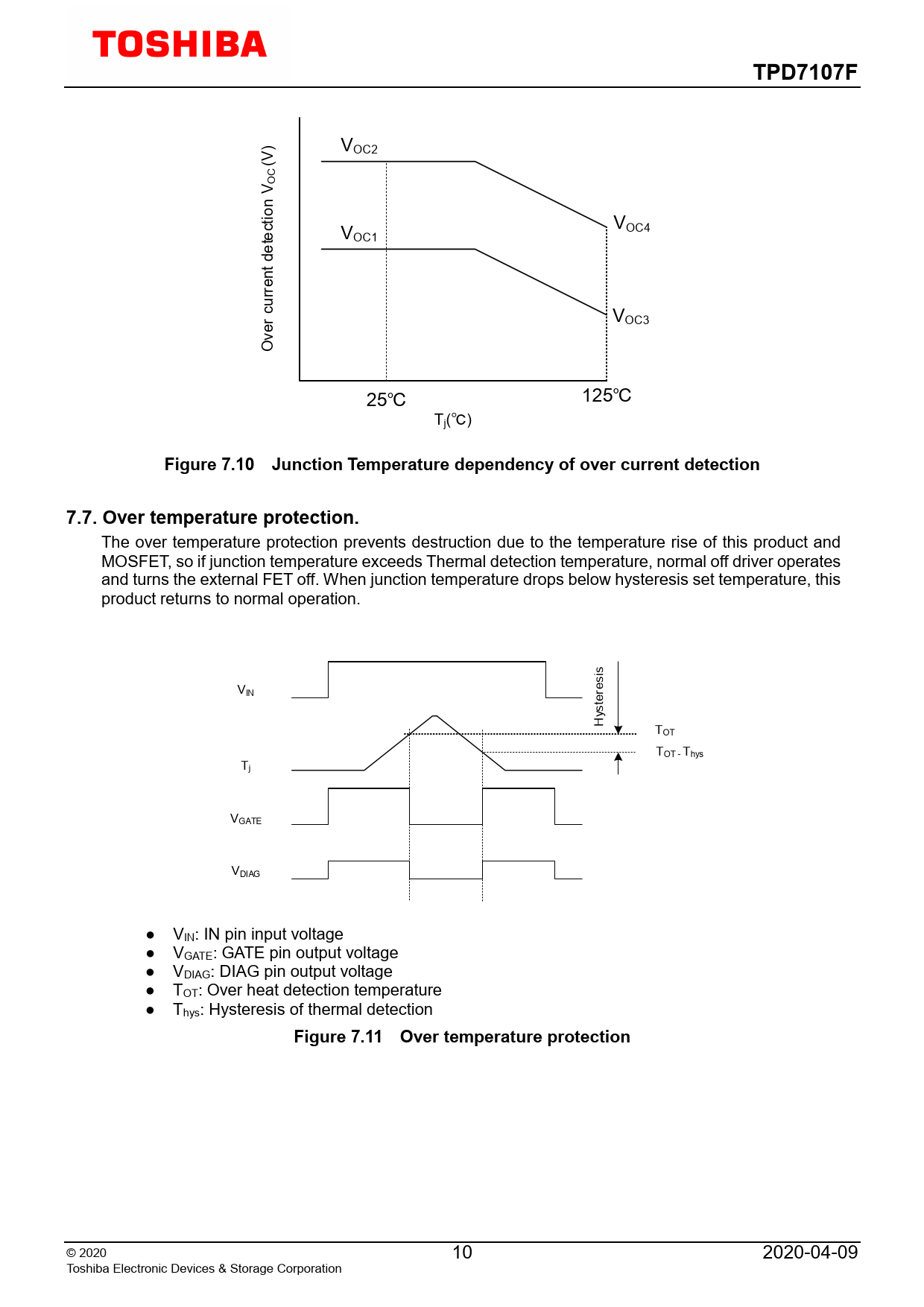 TPD7107F. Figure 7.10 Junction Temperature dependency of over current detection. 7.7. Over temperature protection