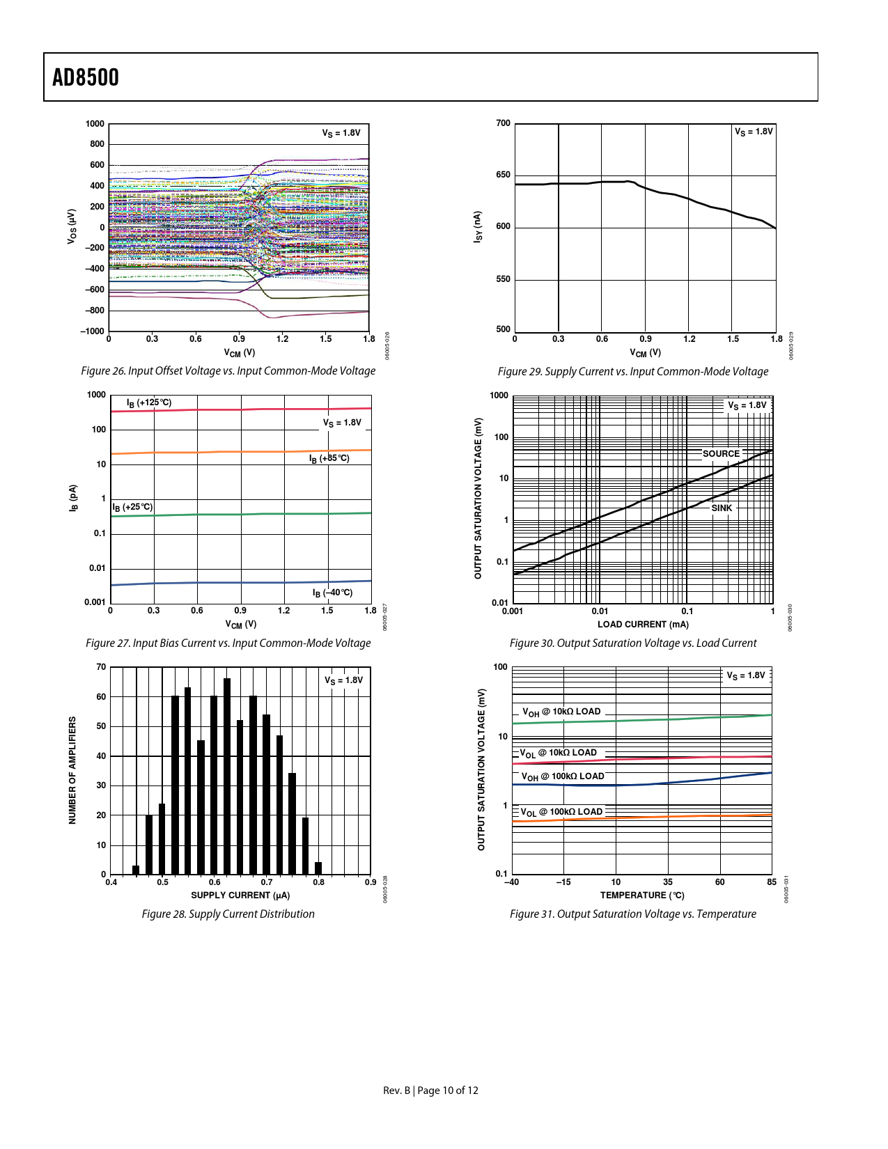 AD8500. 1000. 700. S = 1.8V. 800. 600. 650. 400. 200. ) A. (µV). OSV. I SY. –200. –400. 550. –600. –800. –1000. 500. 0.3. 0.6. 0.9. 1.2. 1.5. 1.8. CM (V). VCM (V). IB (+125°C)
